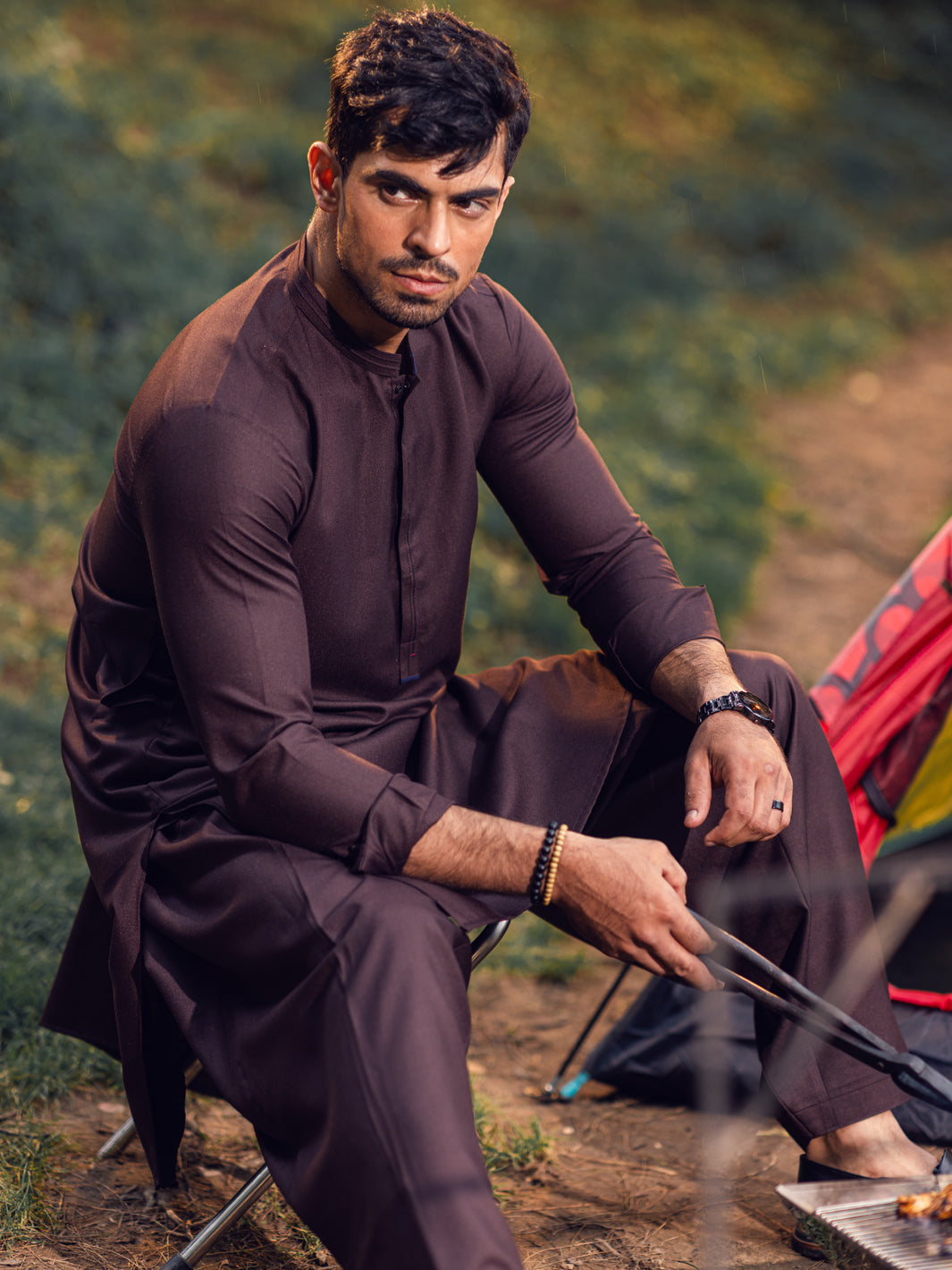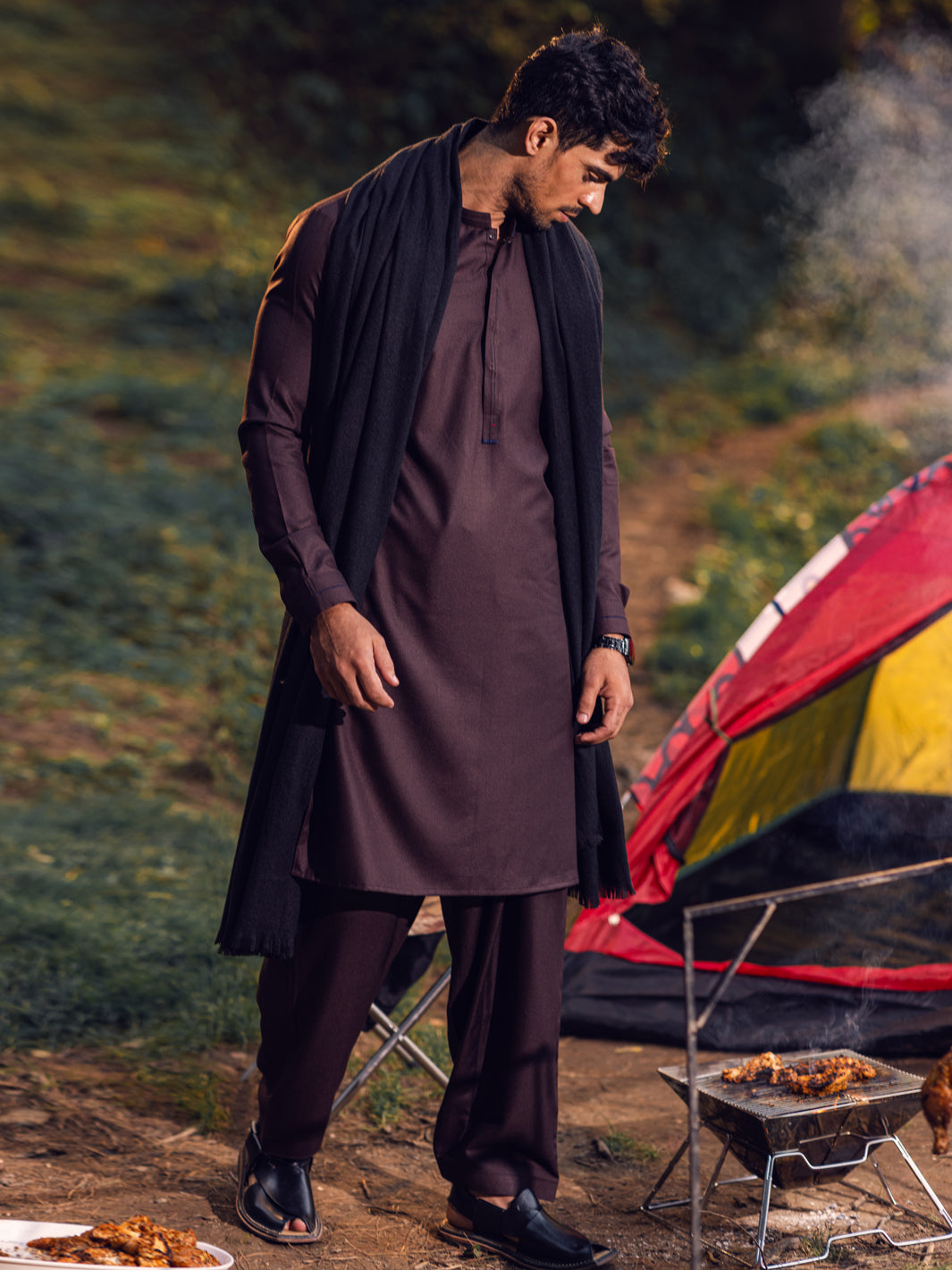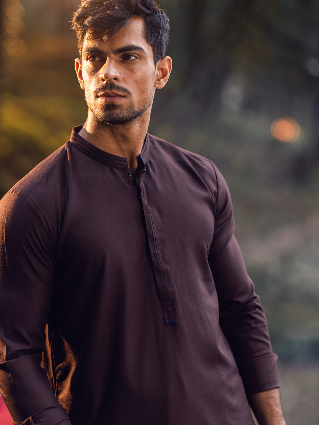 Kameez Shalwar With Cut & Sew With Stitching Details On Collar, Cuffs And Placket