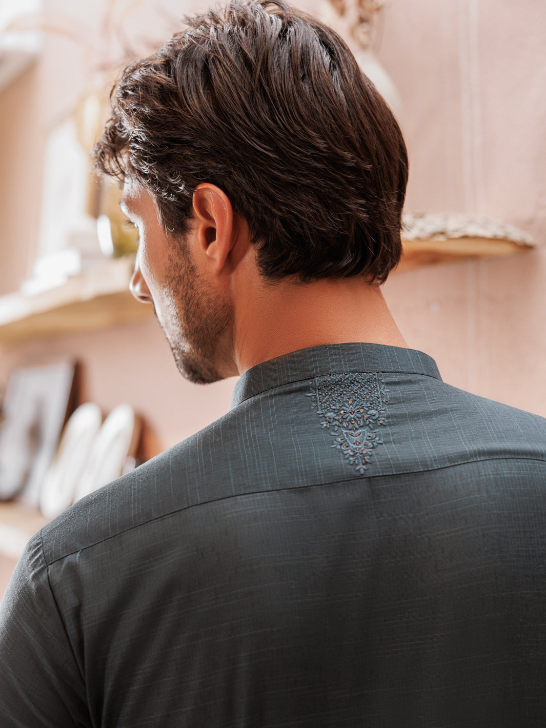 Semi Formal Kurta Shalwar With Embroidery Detail Around The Placket
