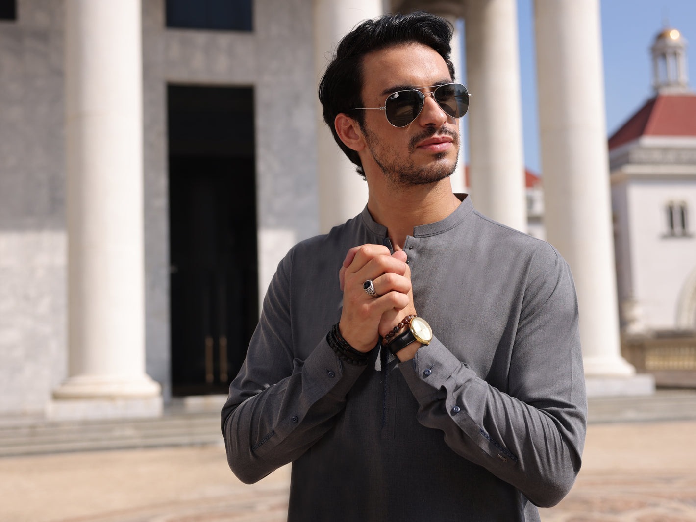 Cut & Sew Kurta Shalwar With Intricate Detailing On The Inner Placket And Rivets Adorning The Outer Placket