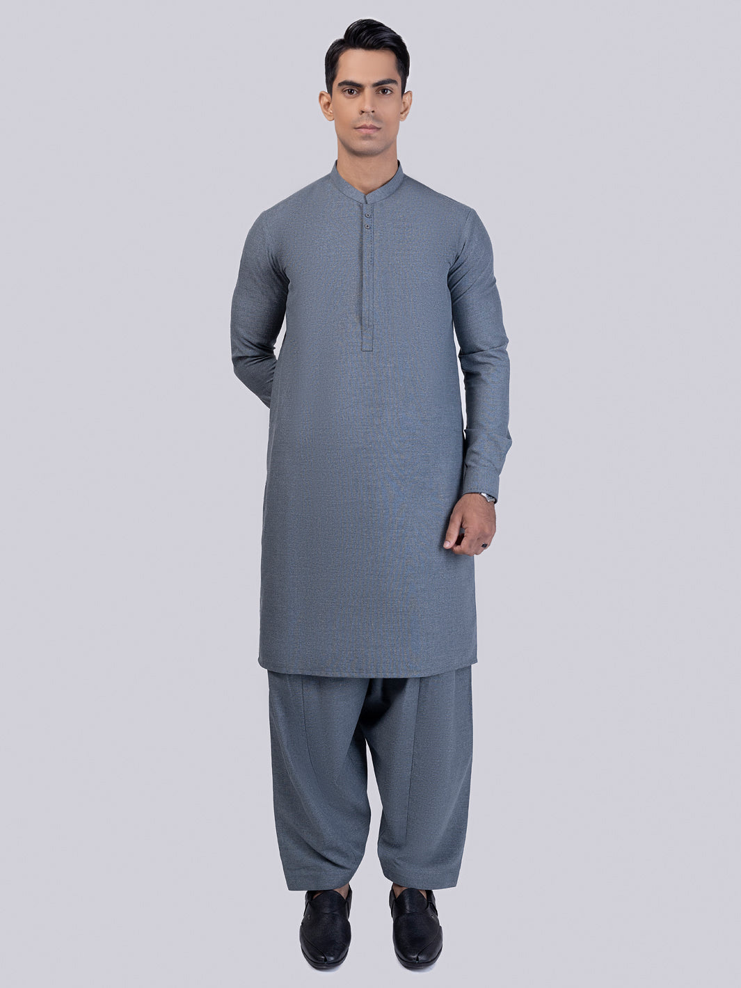 Kameez Shalwar With Cut & Sew With Stitching Details On Collar, Cuffs And Placket