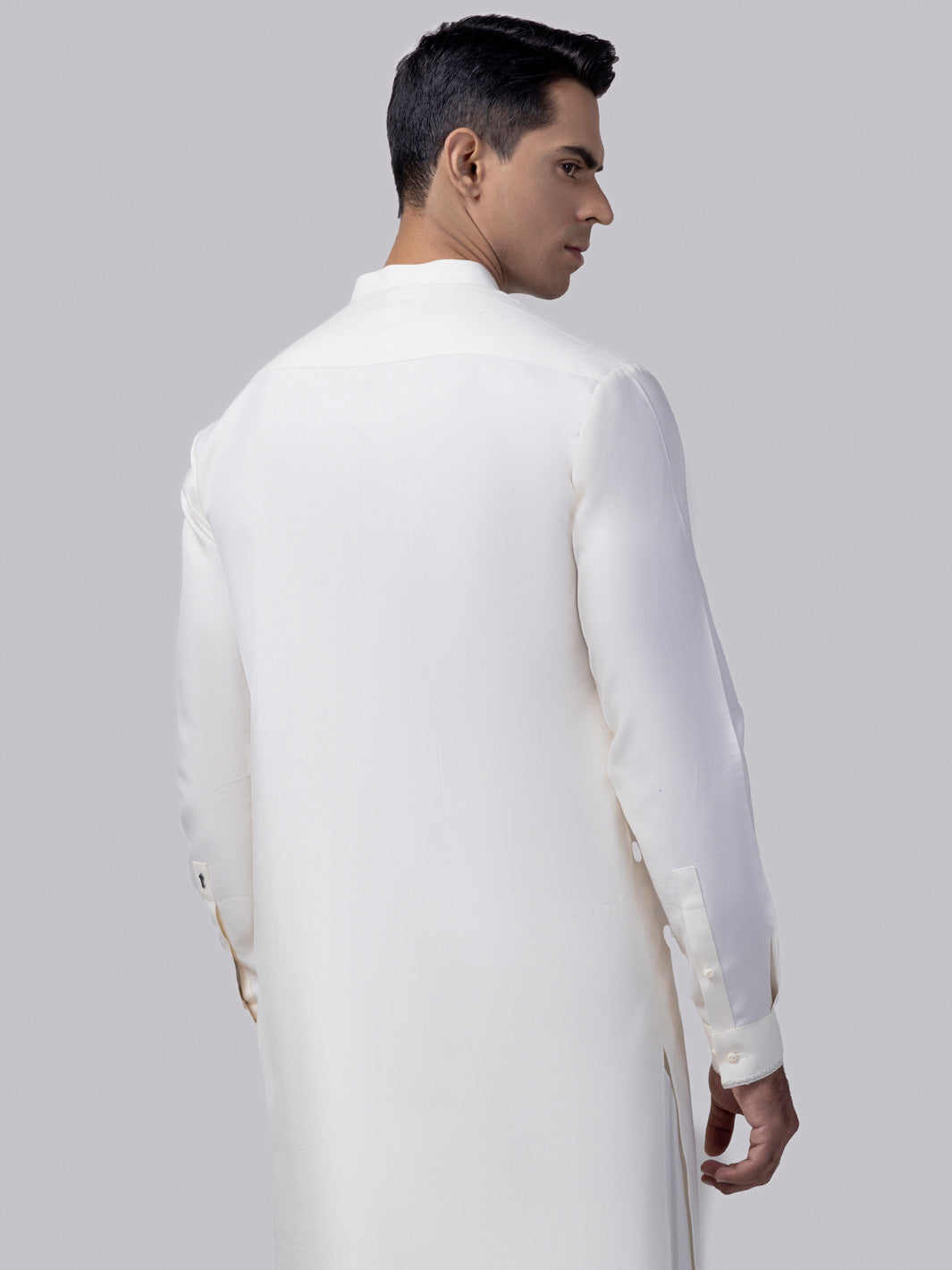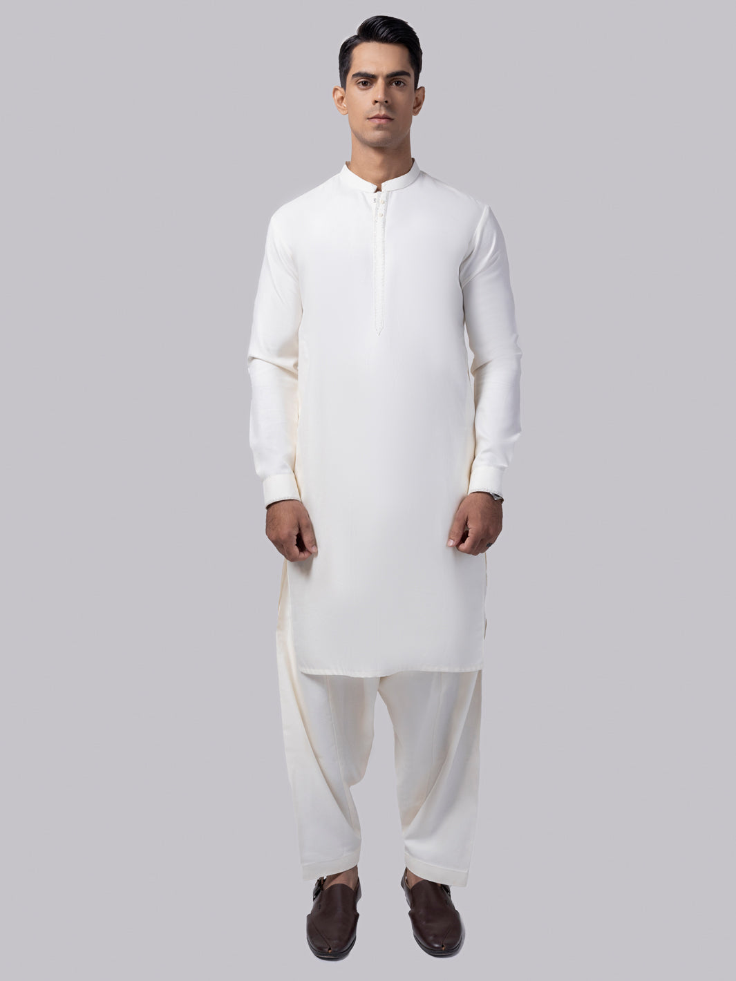 Semi-Formal Kameez Shalwar With Embroidery Details On Placket, Cuffs And Collar