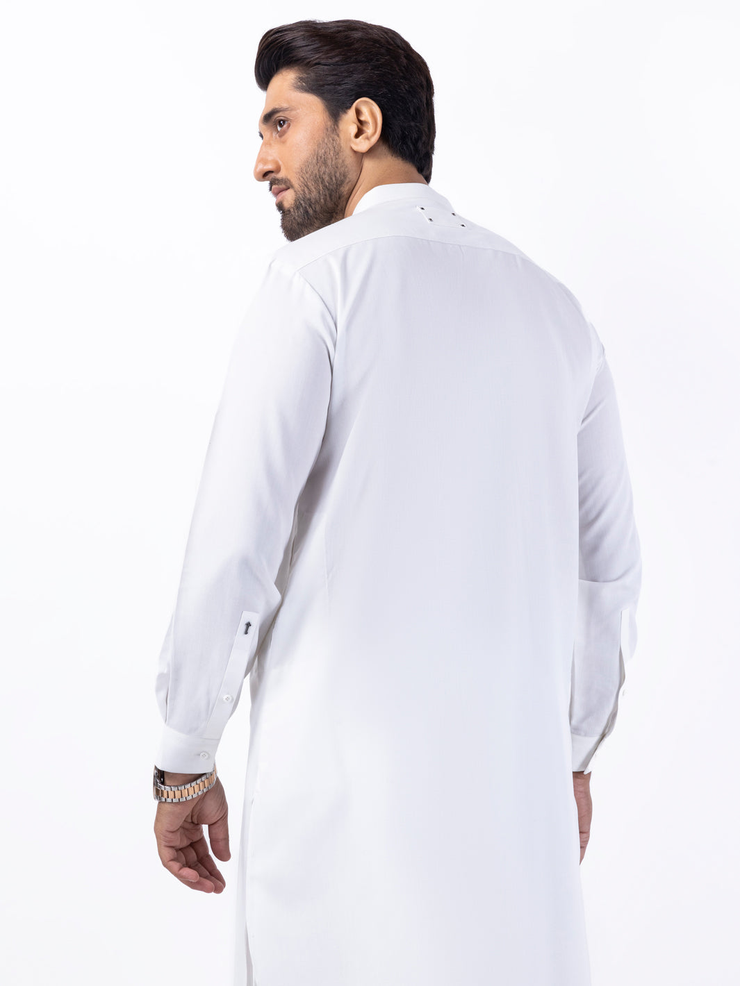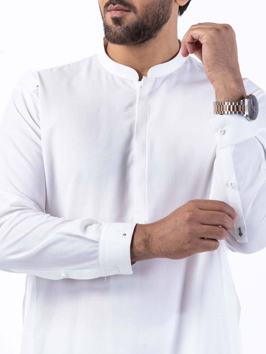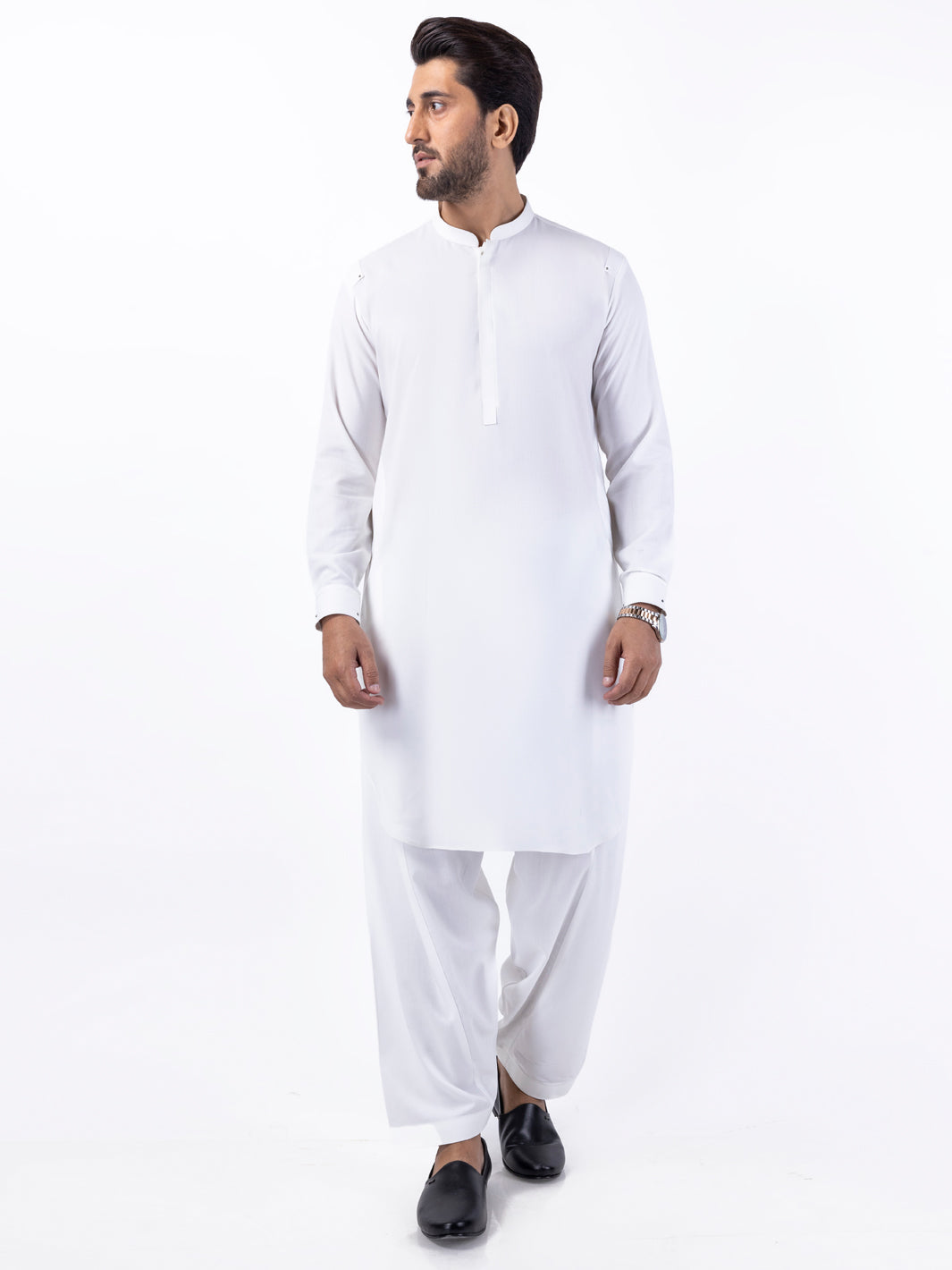 Kameez Shalwar With Stitch Details on the Placket and Rivets Embellishing the Cuffs and Shoulders.