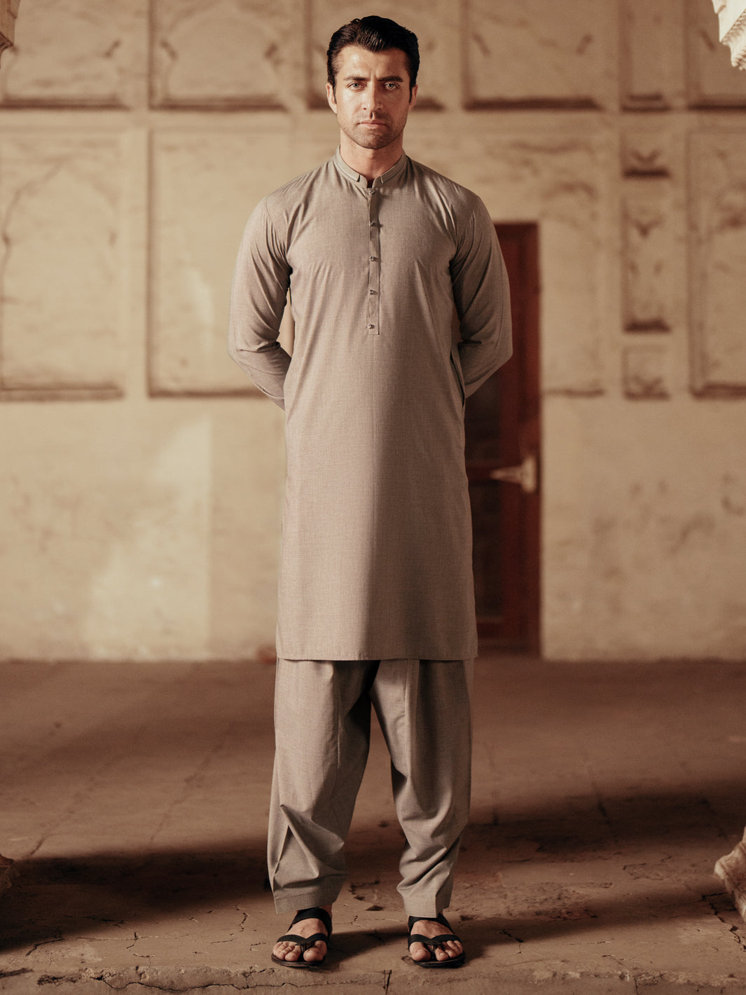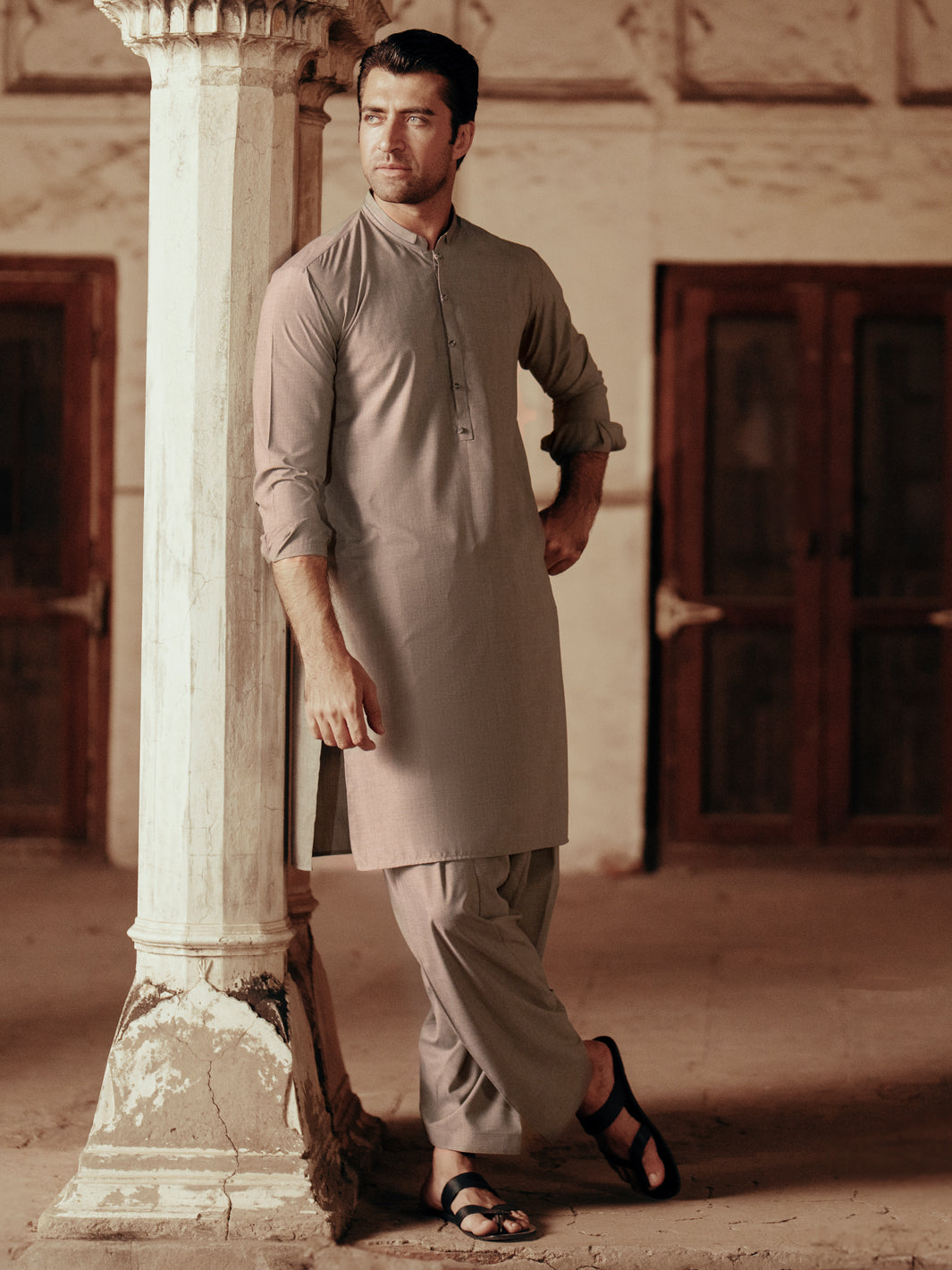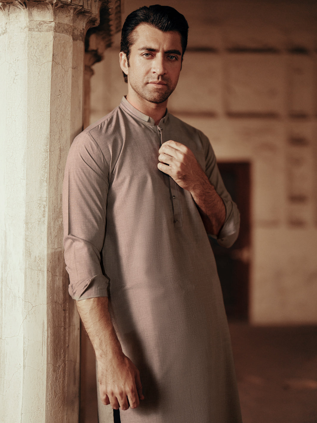 Kameez Shalwar Featuring Cut & Sew Details on the Placket Featuring Double Collar