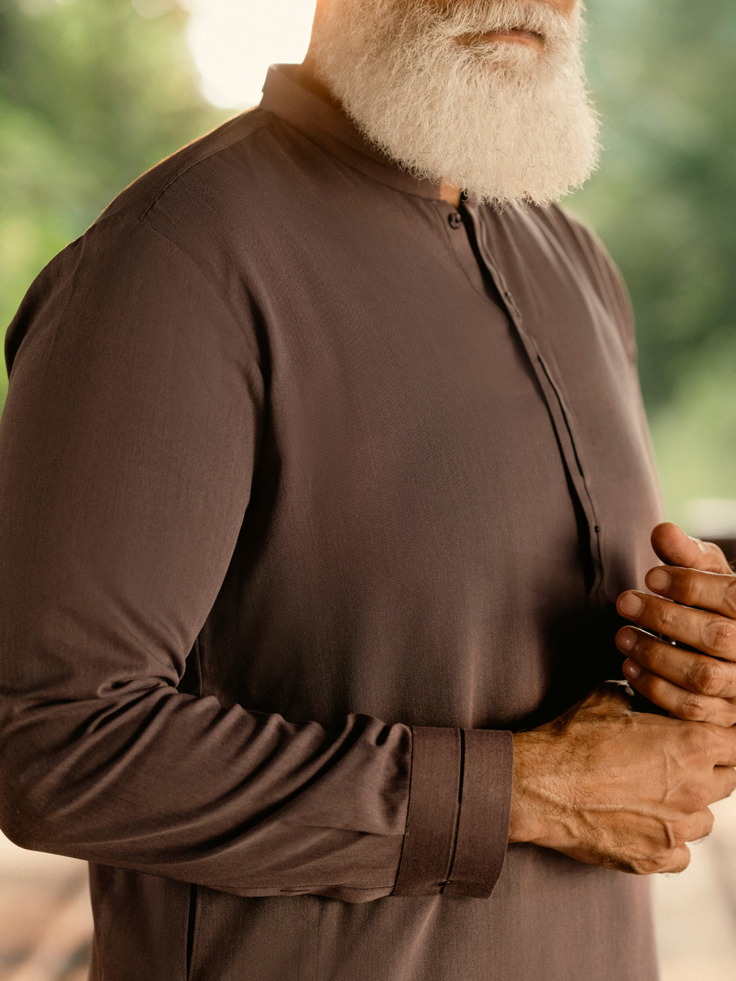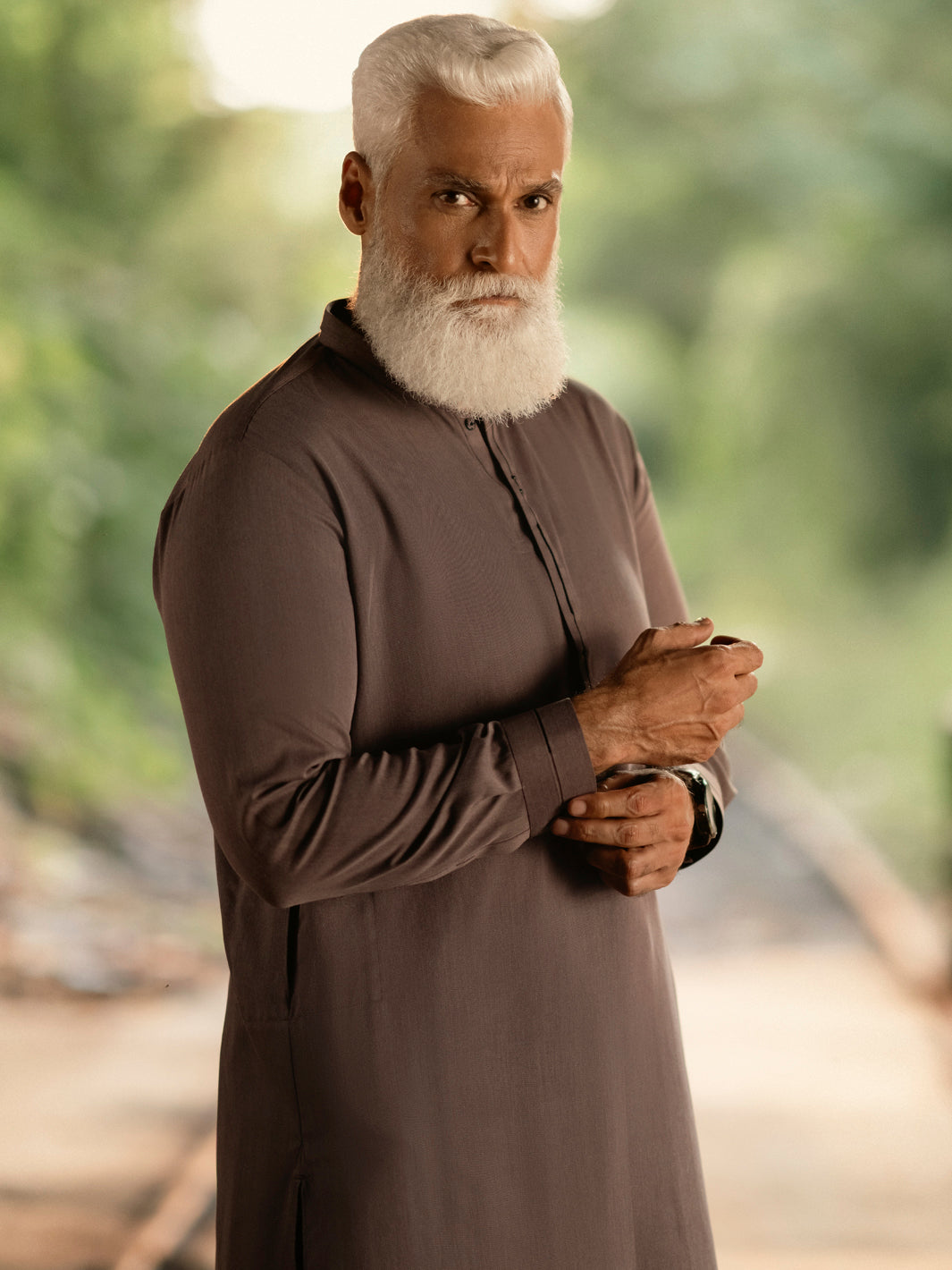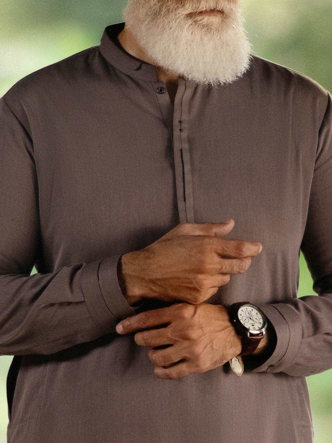 Kameez Shalwar Featuring Rivet Details on the Placket, Accent Box Pleats on the Cuffs, and A Double Collar For A Bold and Stylish Look