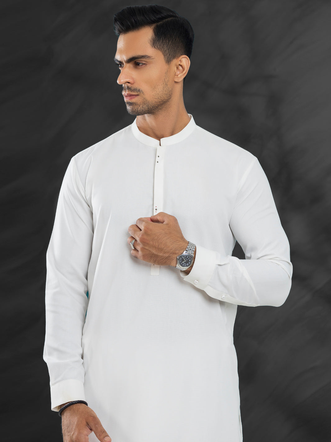 Kameez Shalwar With Cut & Sew and Rivet Details on the Placket For A Modern and Stylish Look.