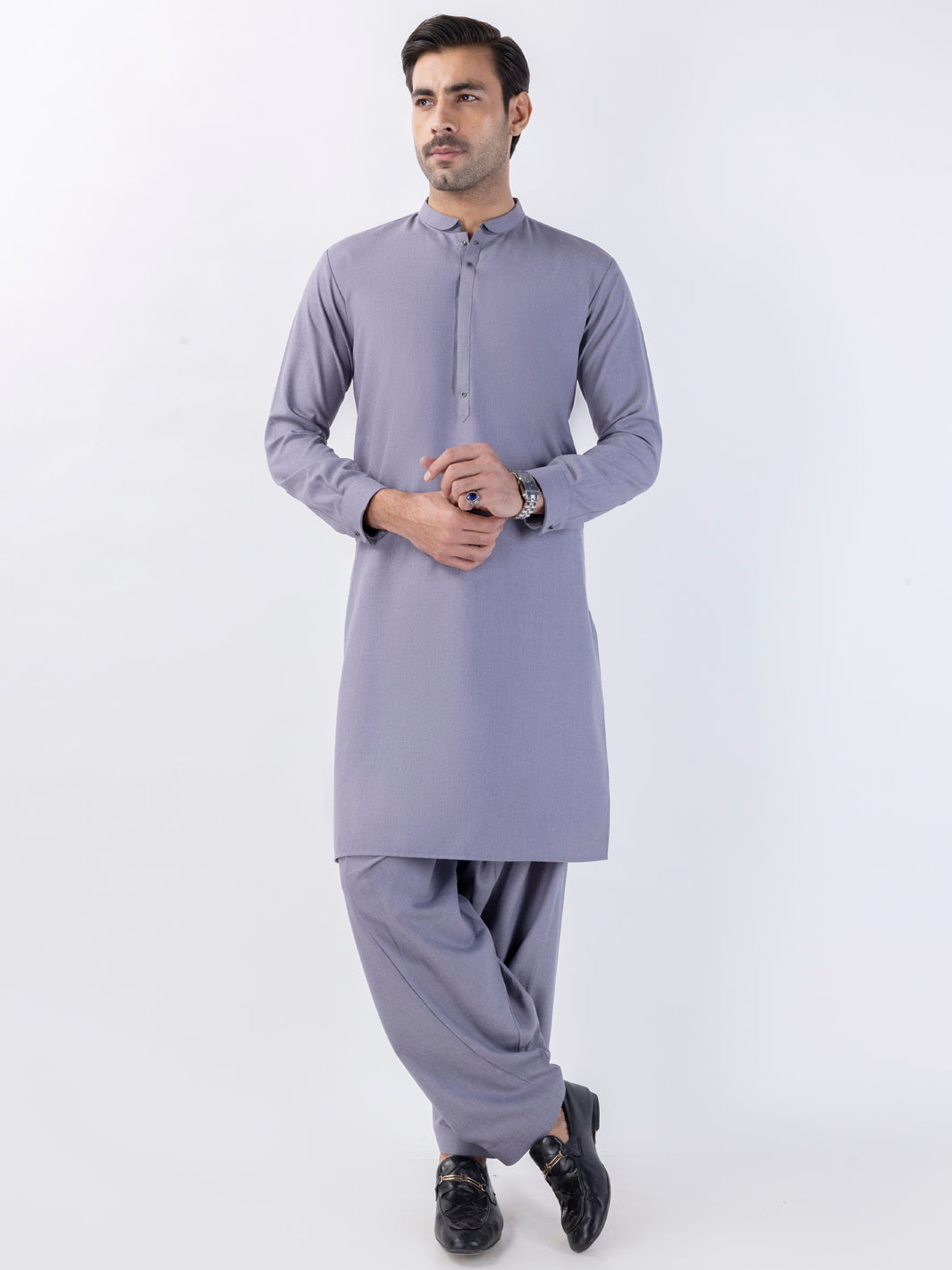 Light Grey Blended Kameez Shalwar - AL-KS-3137