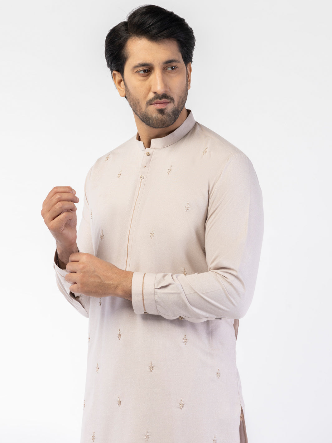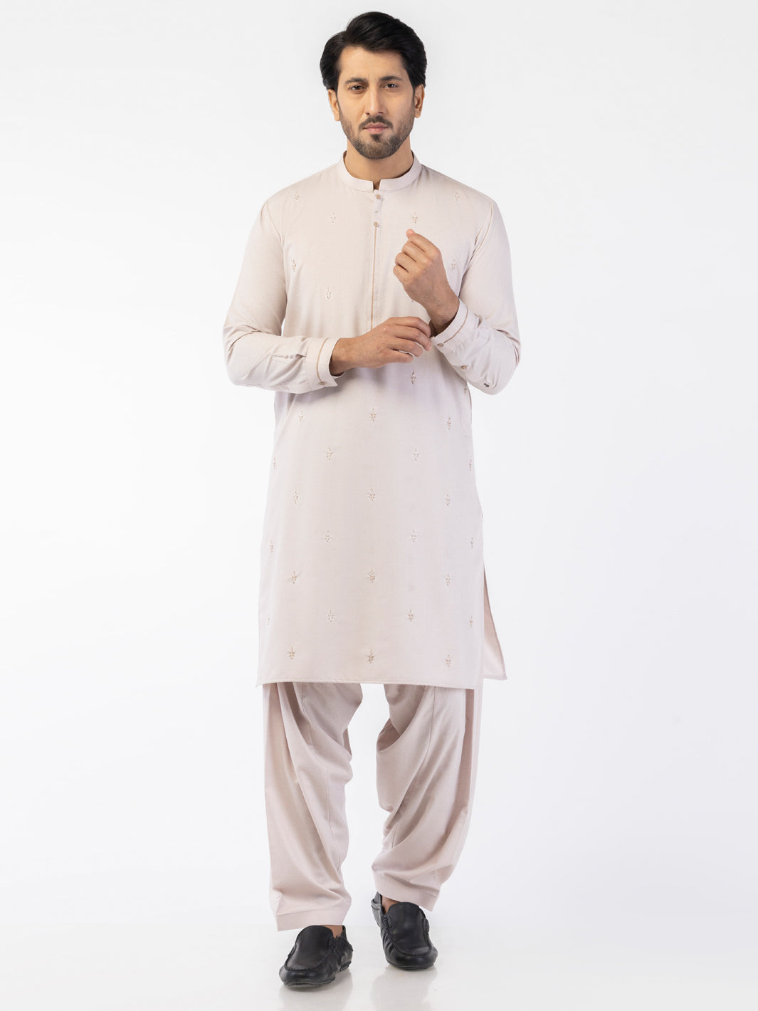 Semi Formal Kameez Shalwar With Intricate Embroidered Motifs all Over the Front