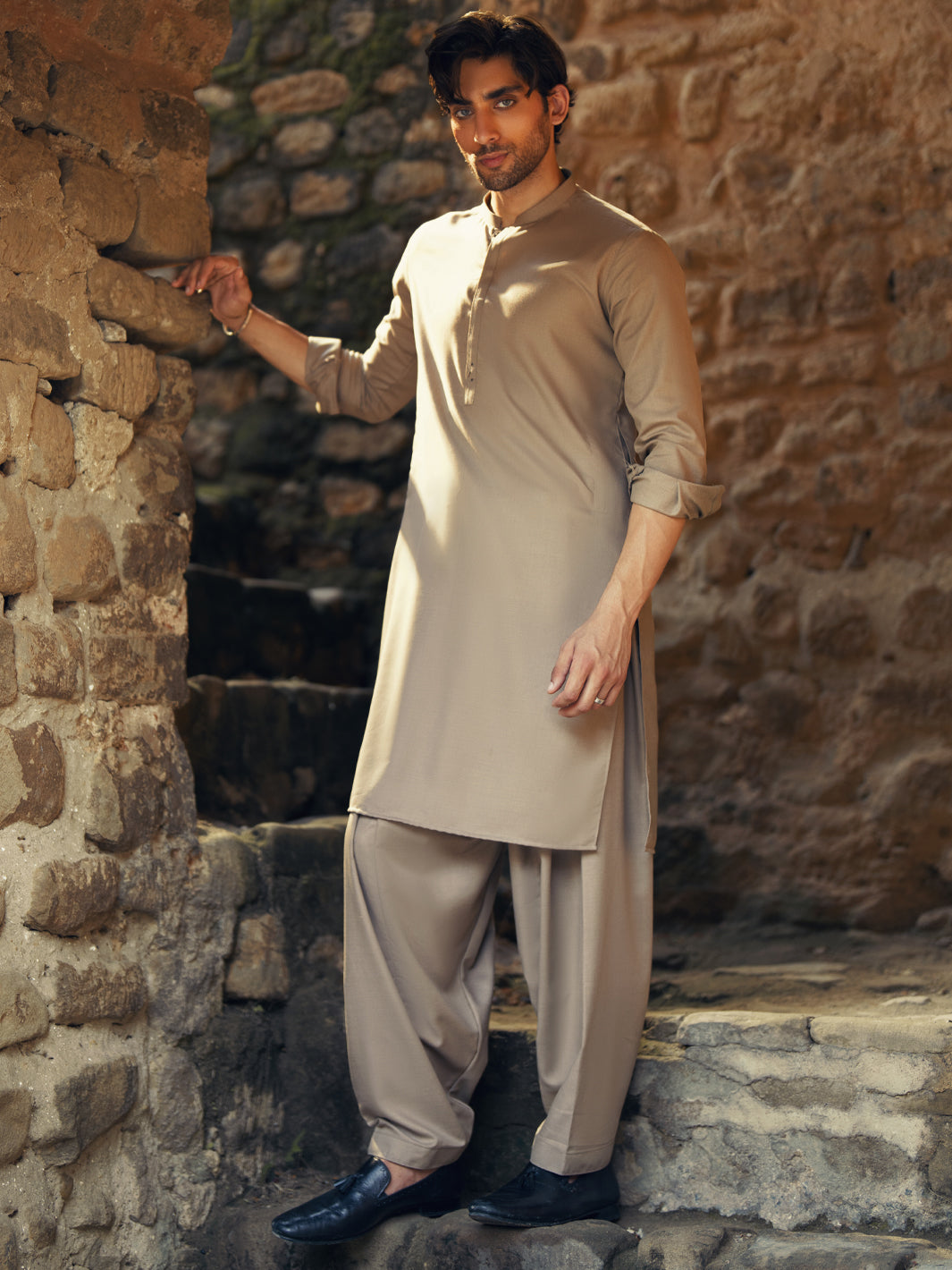 A Classic Cut-And-Sew Kameez Shalwar Crafted With Refined Tailoring and Modern Detailing.