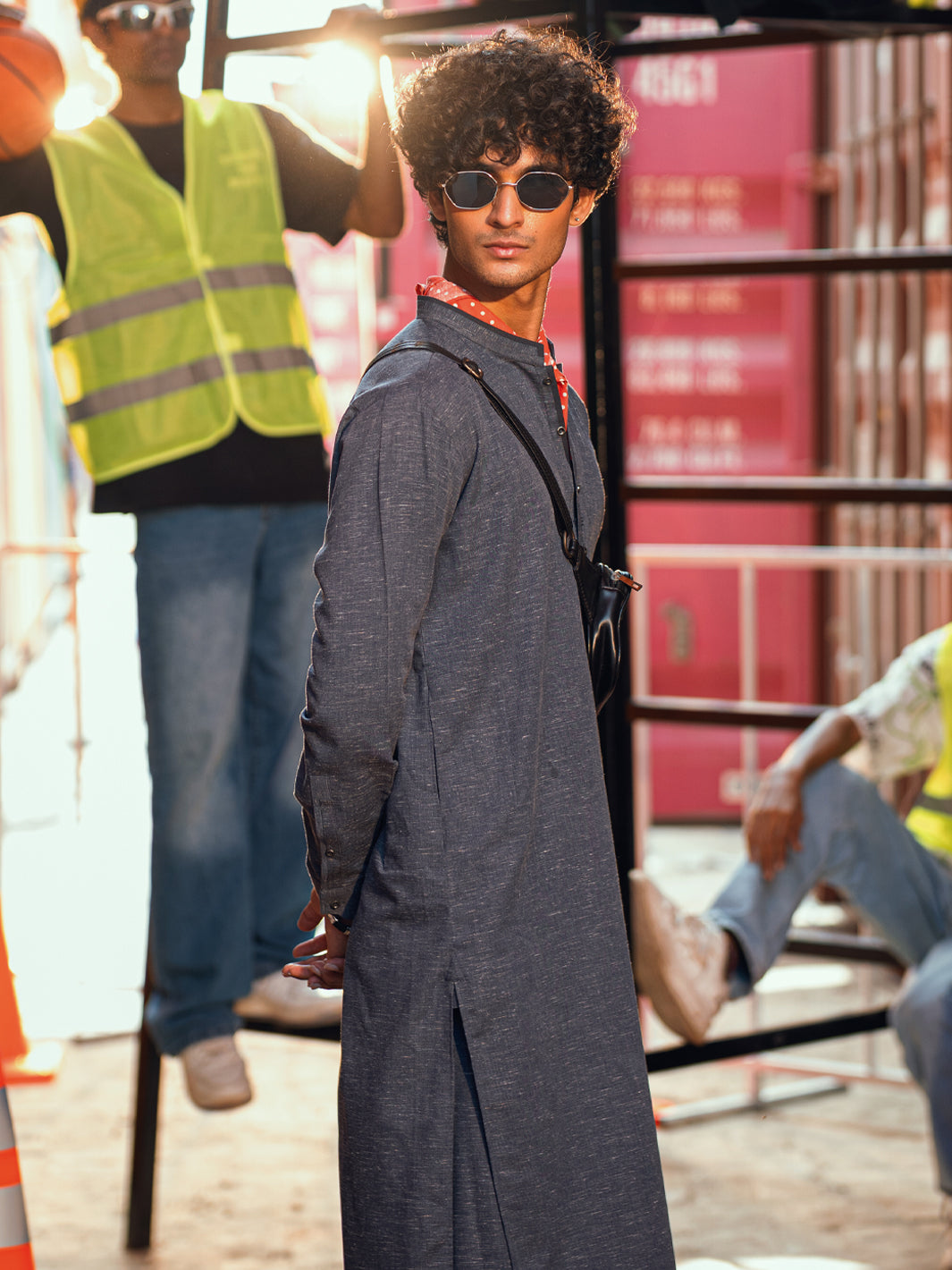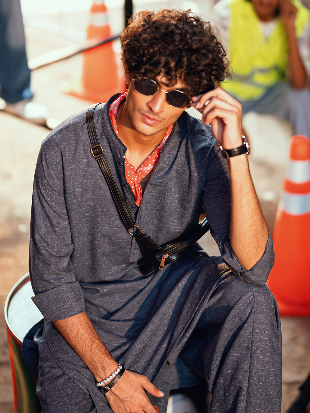 Classic Kameez Shalwar Designed With Cut-And-Sew Accent Details on the Placket and Collar