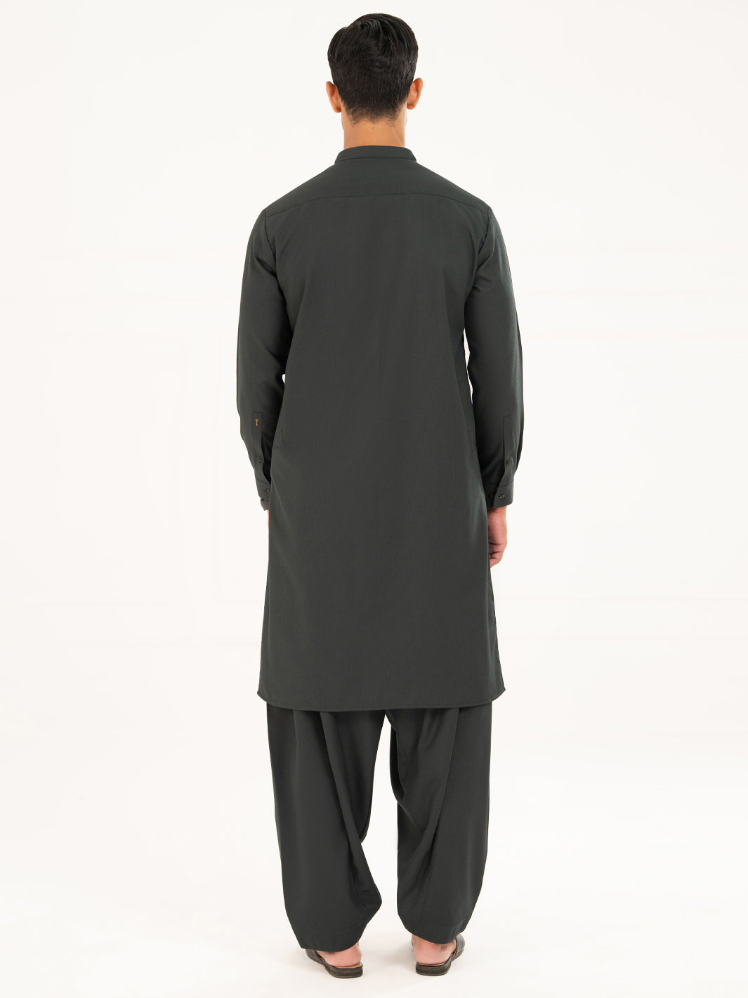 Dark Green Plain Kameez Shalwar - AL-KS-3315
