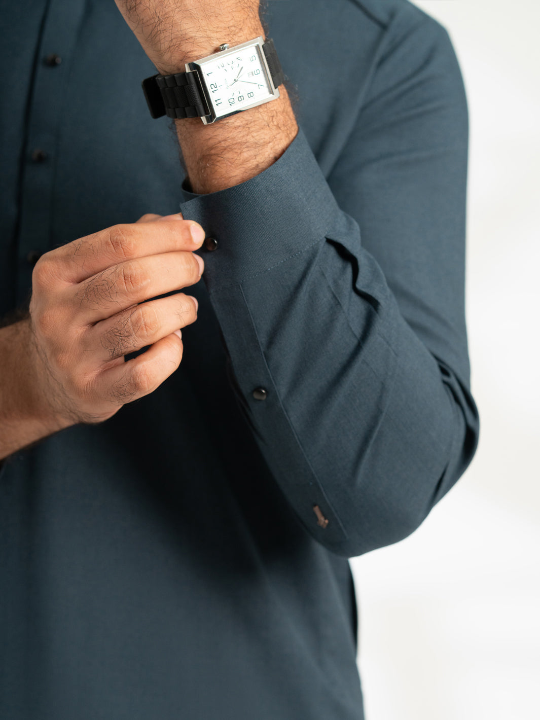 Teal Coloured Kameez Shalwar With Metallic Buttons and Stitch Details