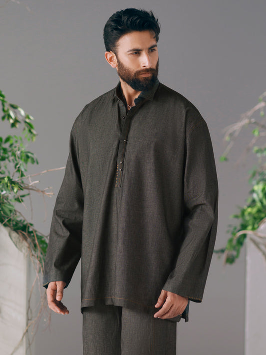 Charcoal Cotton Cut & Sew Kurta Trousers - AL-KT-3423
