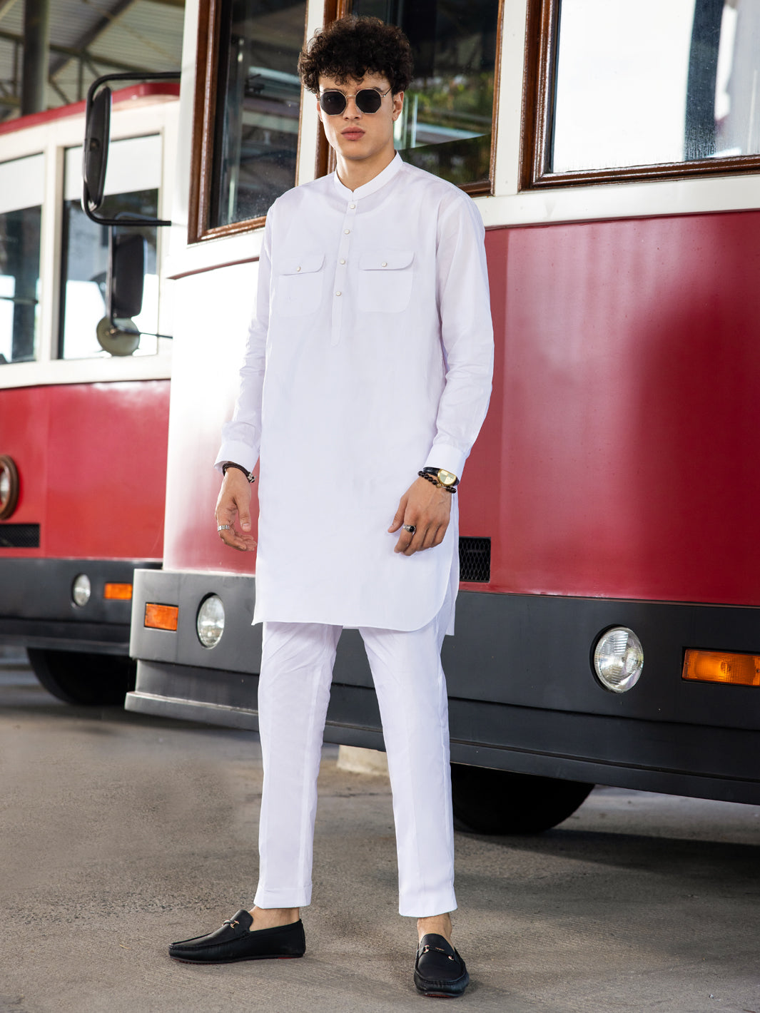 White Cotton Kurta Trouser - AL-KT-3042