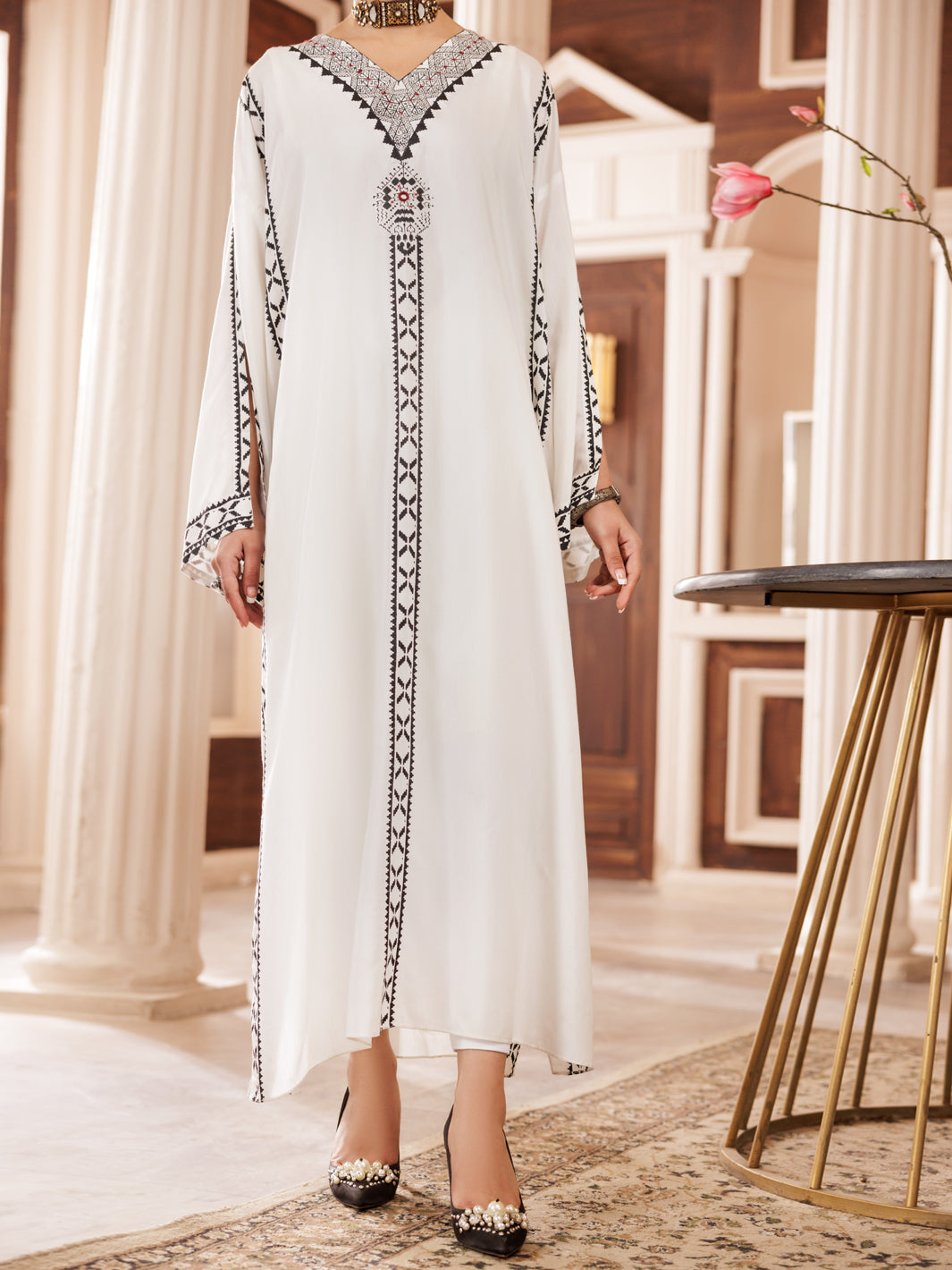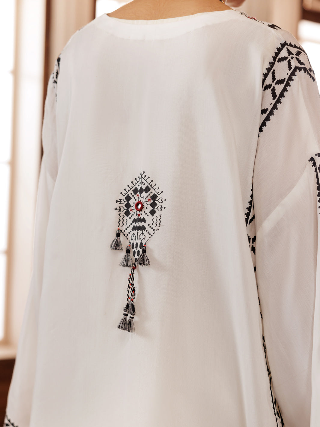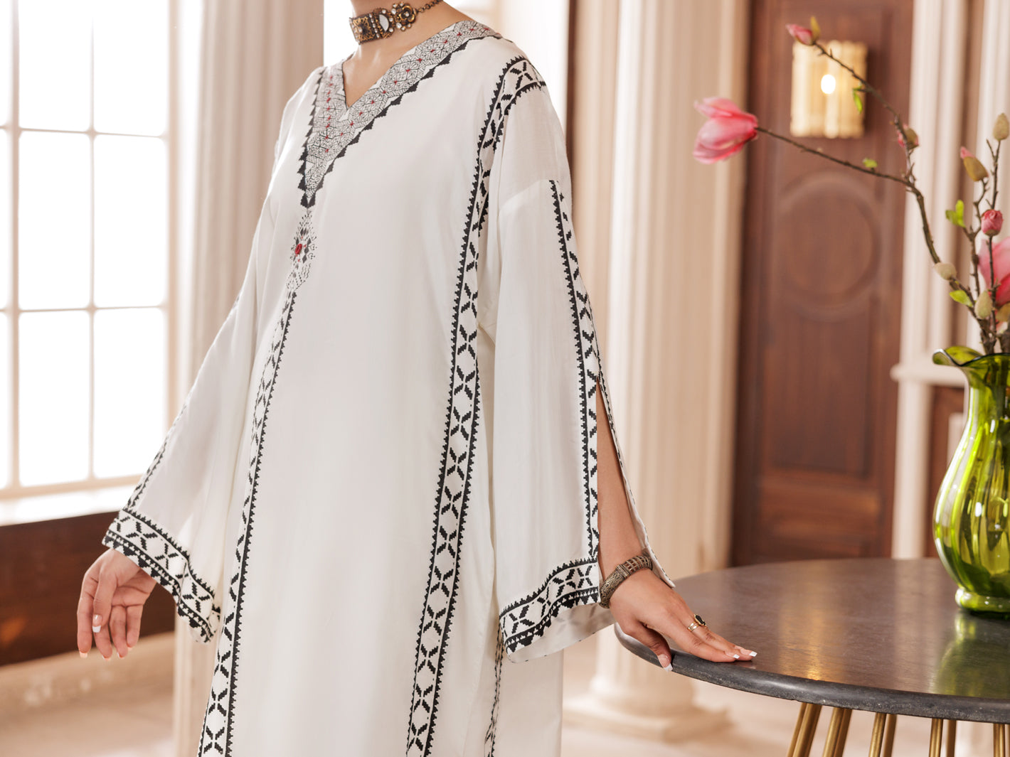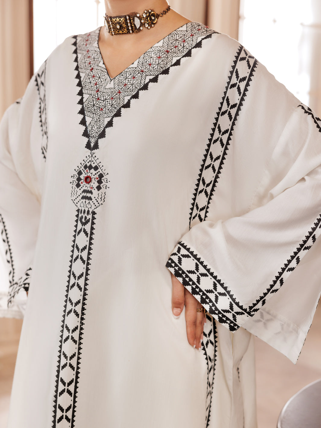 Block printed kaftan shirt side with slit style and hand touch-up details on front & back neckline.