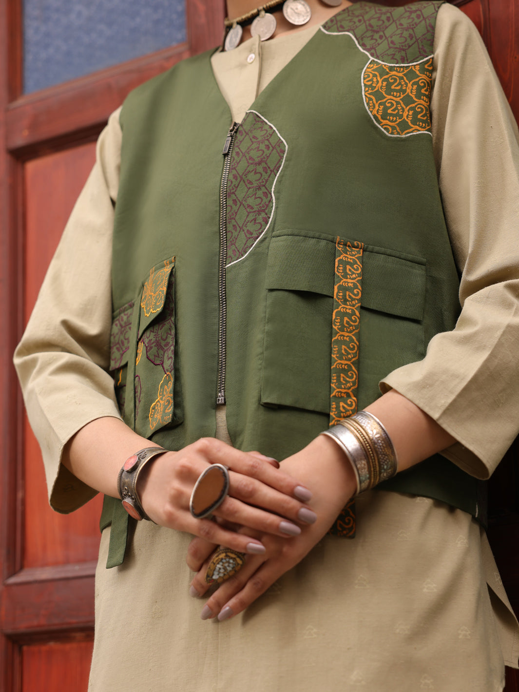 Green Mehndi Cambric Waistcoat - AL-LK-LCT-917