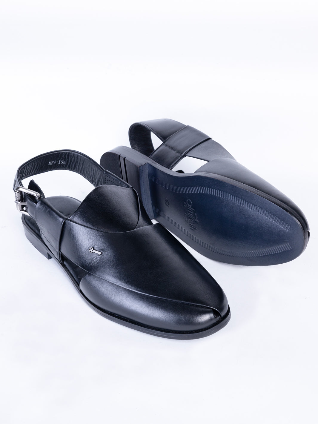 Traditional Peshawari Chappal With Round Tip-Toe Style, Made With In High Chrome Leather On High-Quality Single Sole