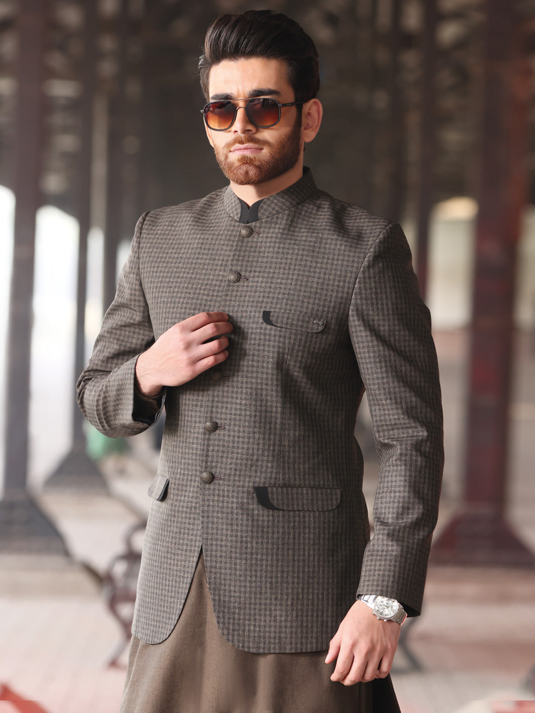 Grey Imported Fabric Prince Coat With Cut And Sew Detail