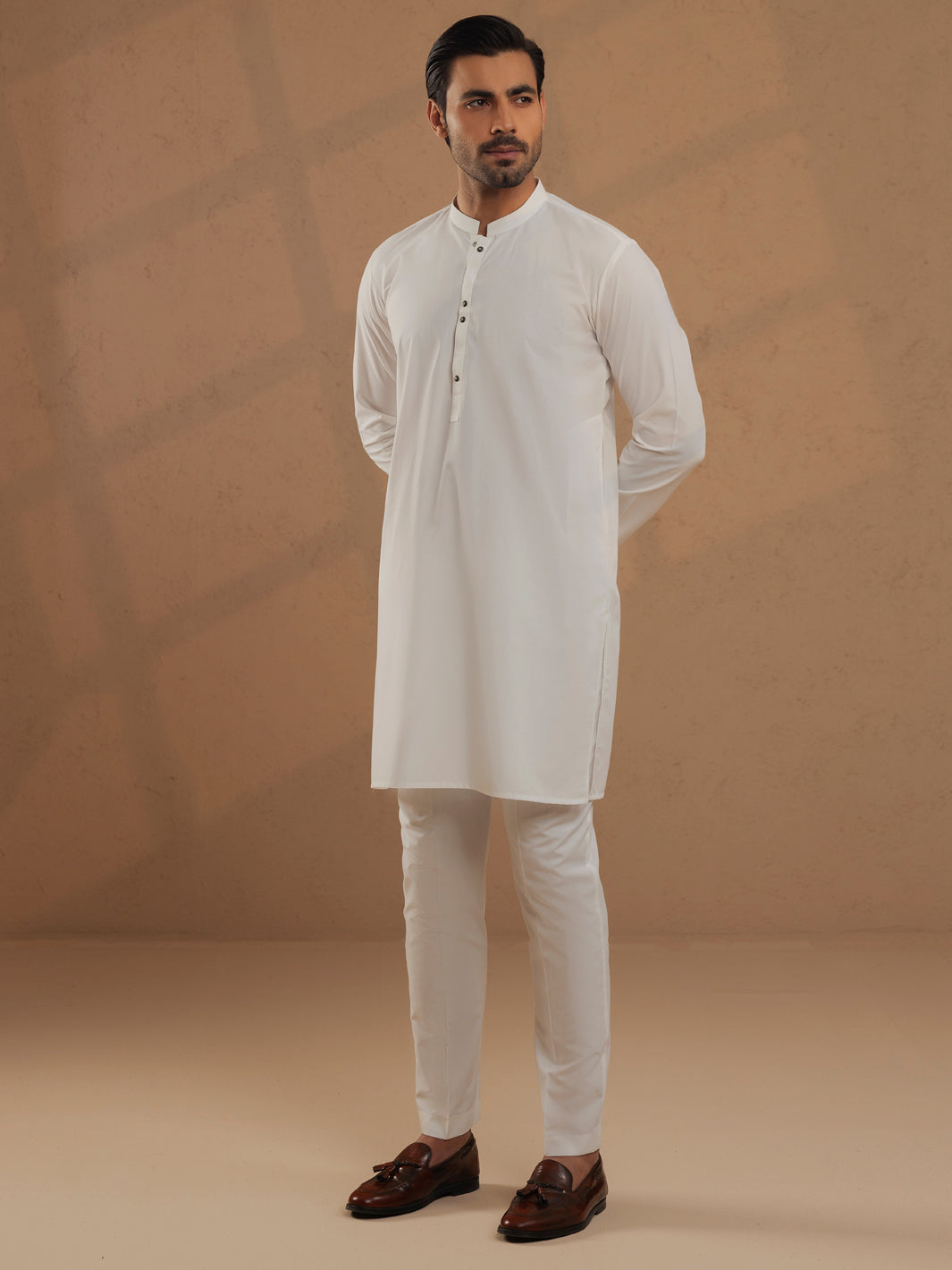 White Blended Unstitched Fabric - AL-UN-JHR-6151
