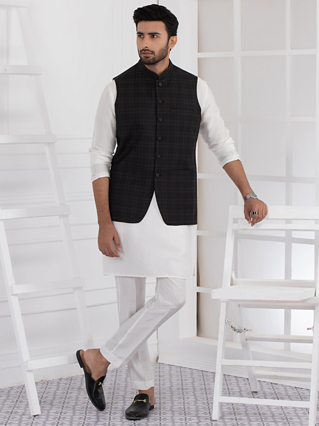 Checkered Waistcoat With Metallic Buttons And Small Stitches