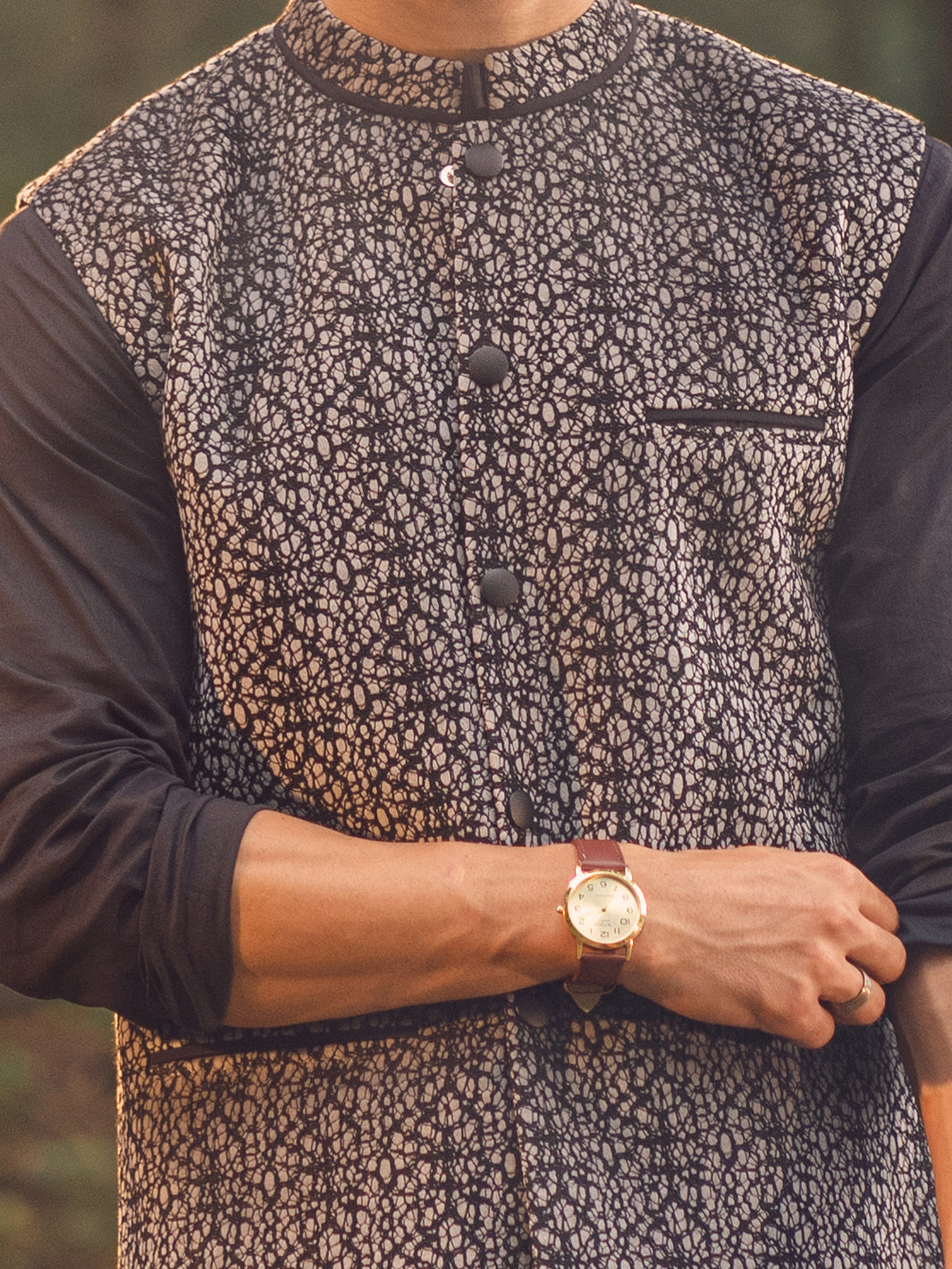 Cut & Sew Detailed Imported Fabric Waistcoat