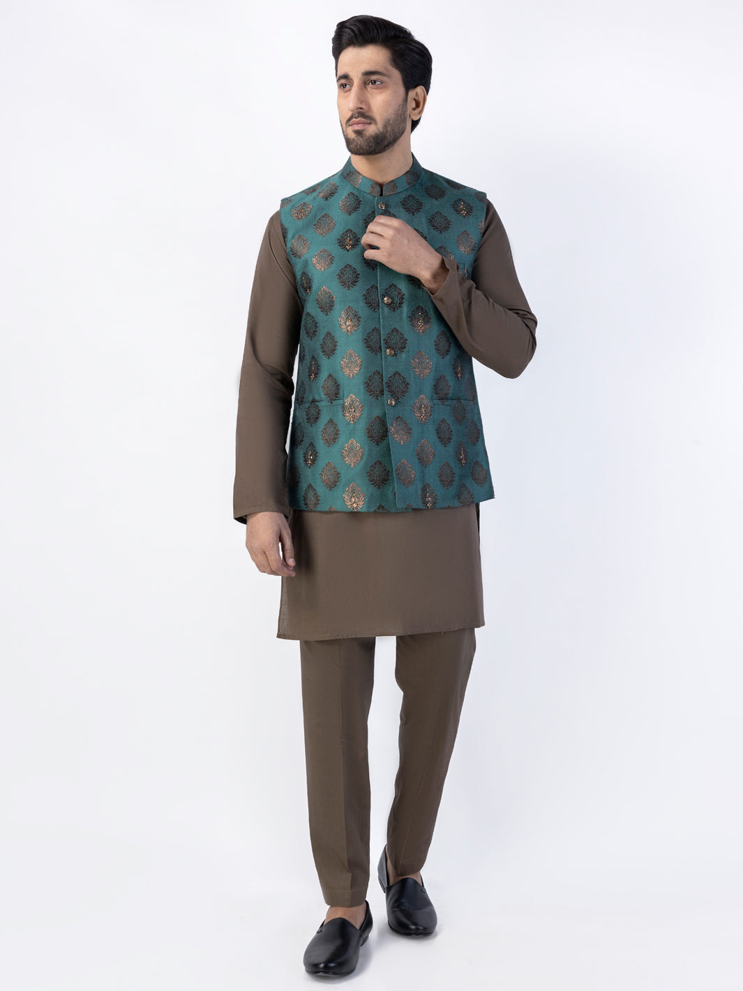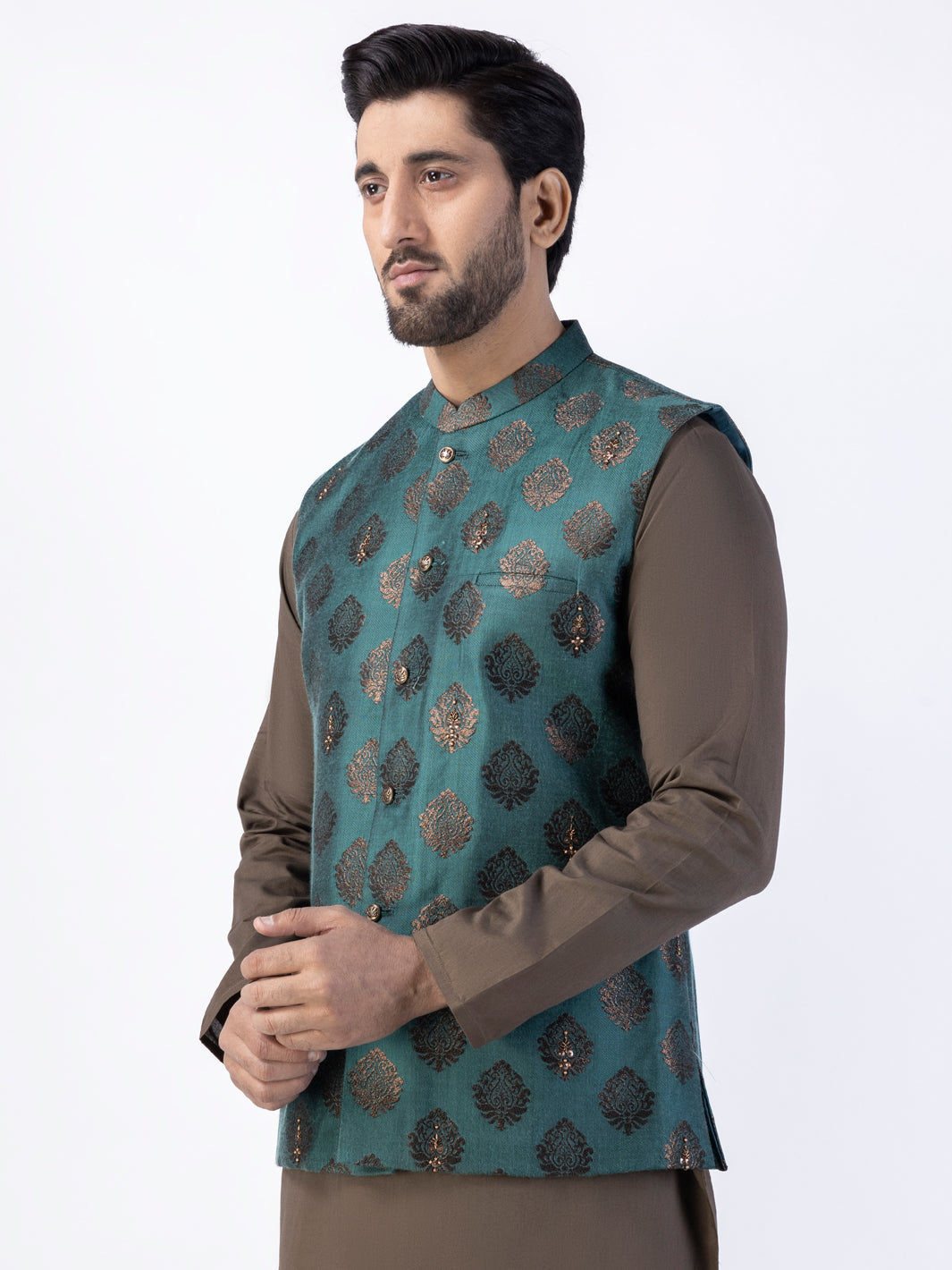 Imported Fabric Waistcoat Emballished With Embriodery Details