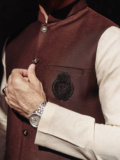 Semi formal waistcoat adorned with high-quality buttons and an embroidered bunch on the front