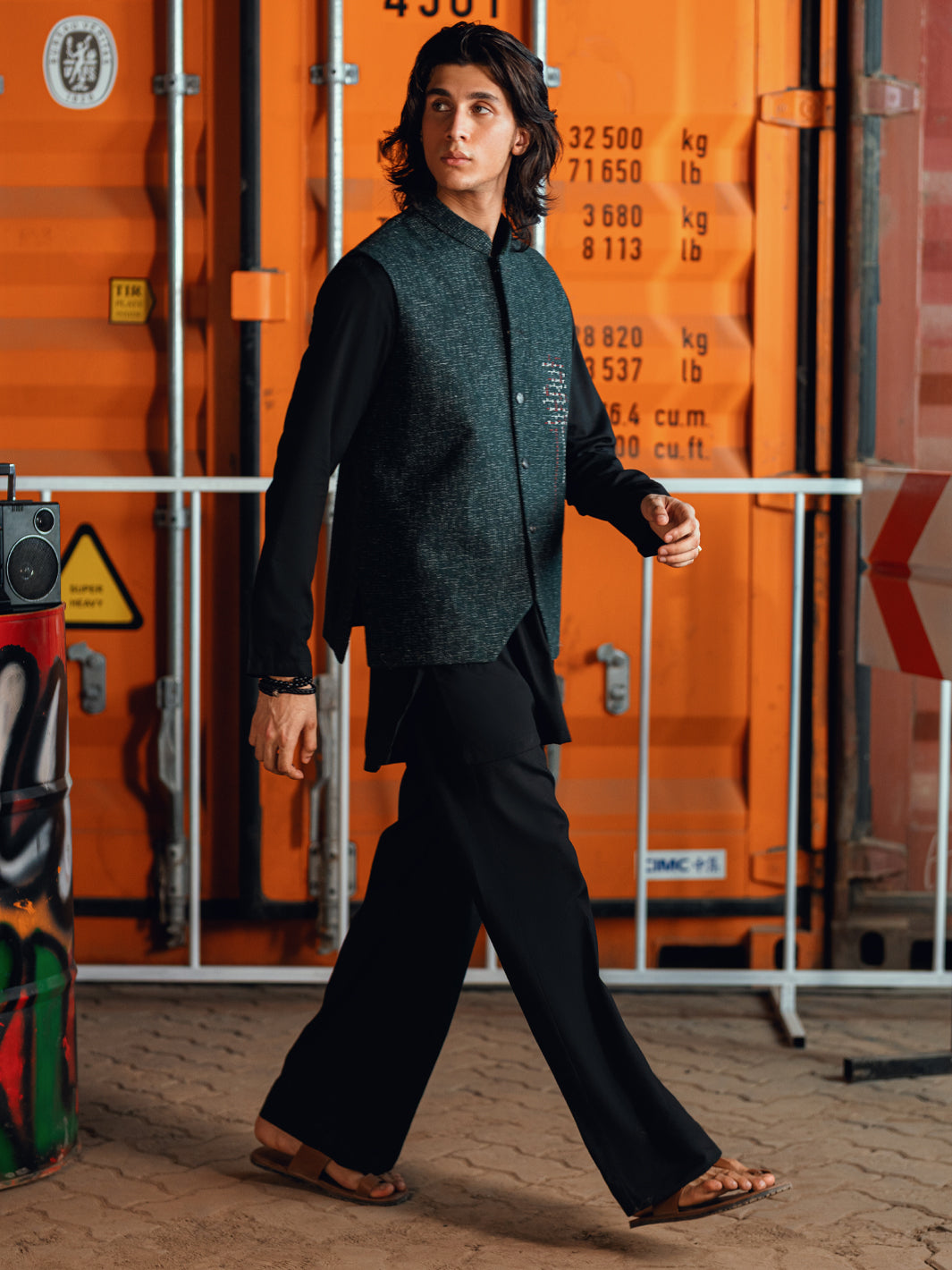 Green Cut & Sew Waistcoat Detailed With Accent Stitch Details