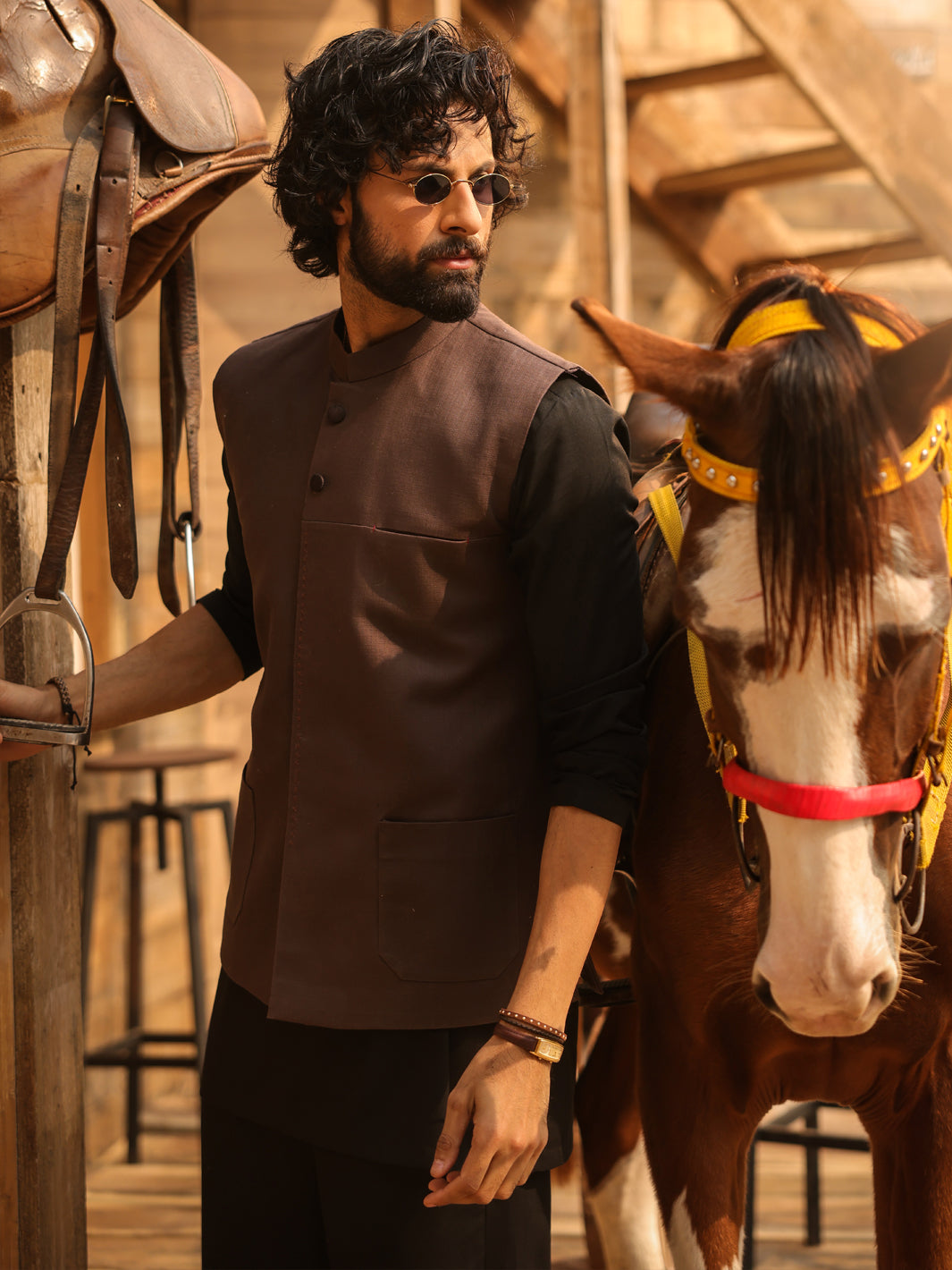 Brown Waistcoat With Invisible Front Pocket, Stitch Detail and Patch Pockets