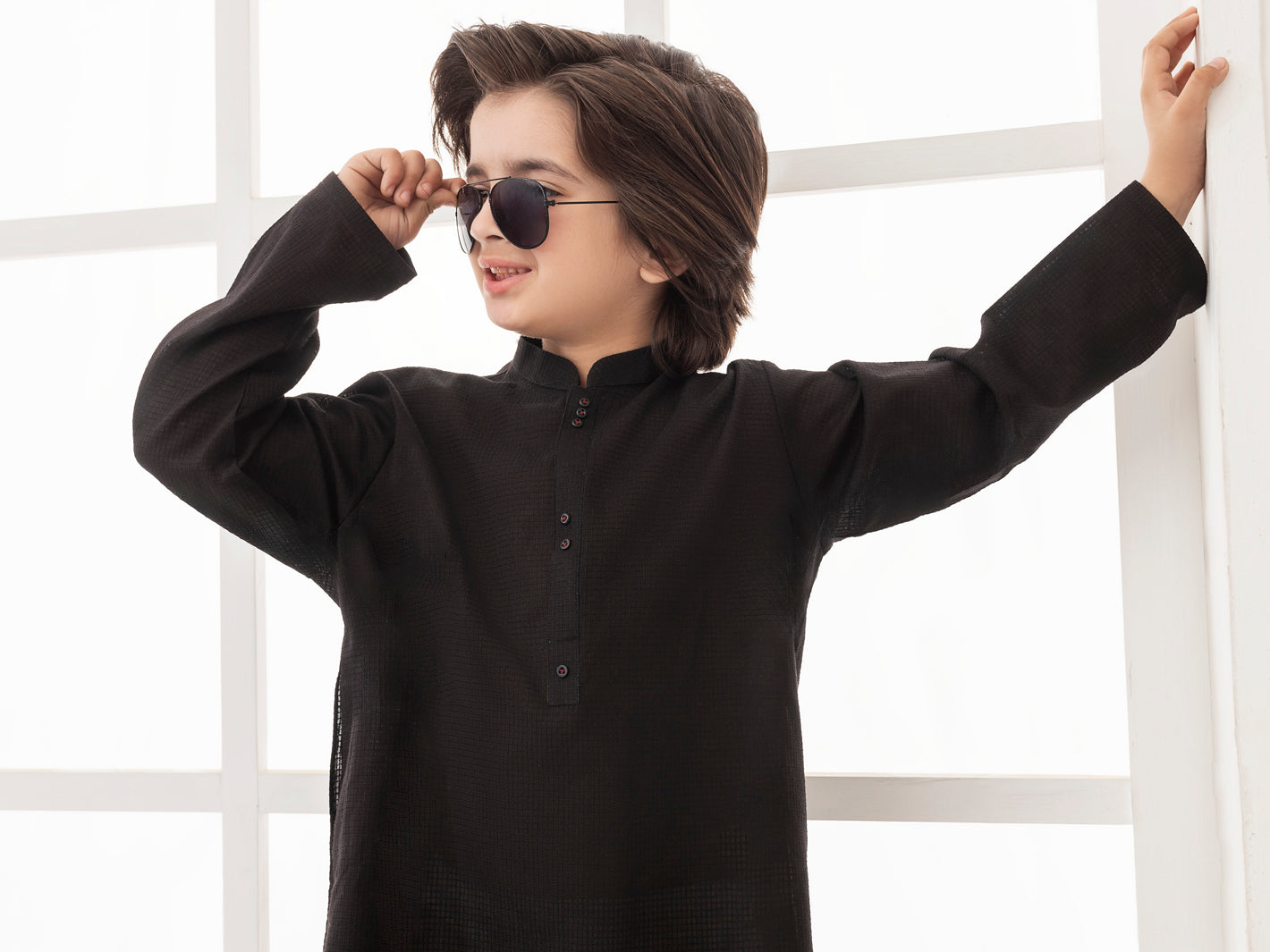 Dyed Dobby Kurta With A Subtle Textured Pattern