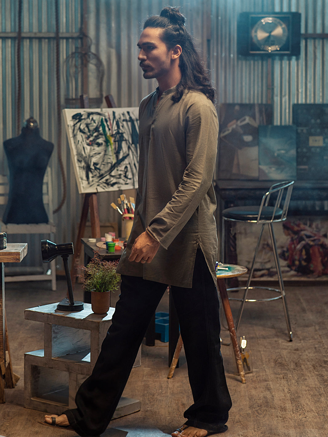 Olive Colored, Short Kurta In A Relaxed Silhouette.