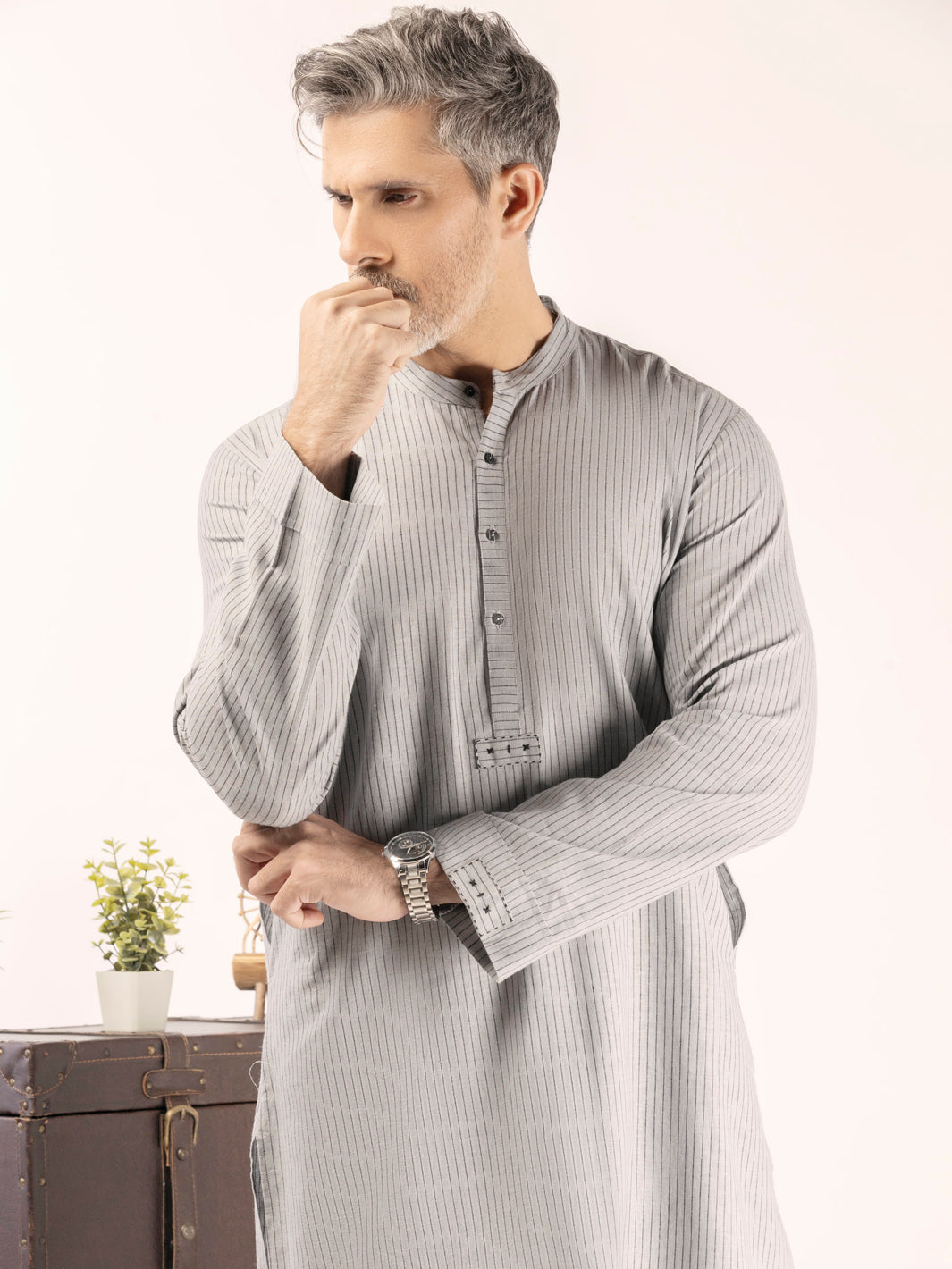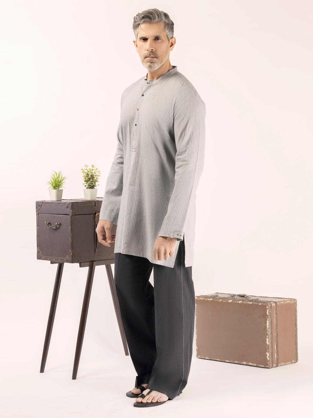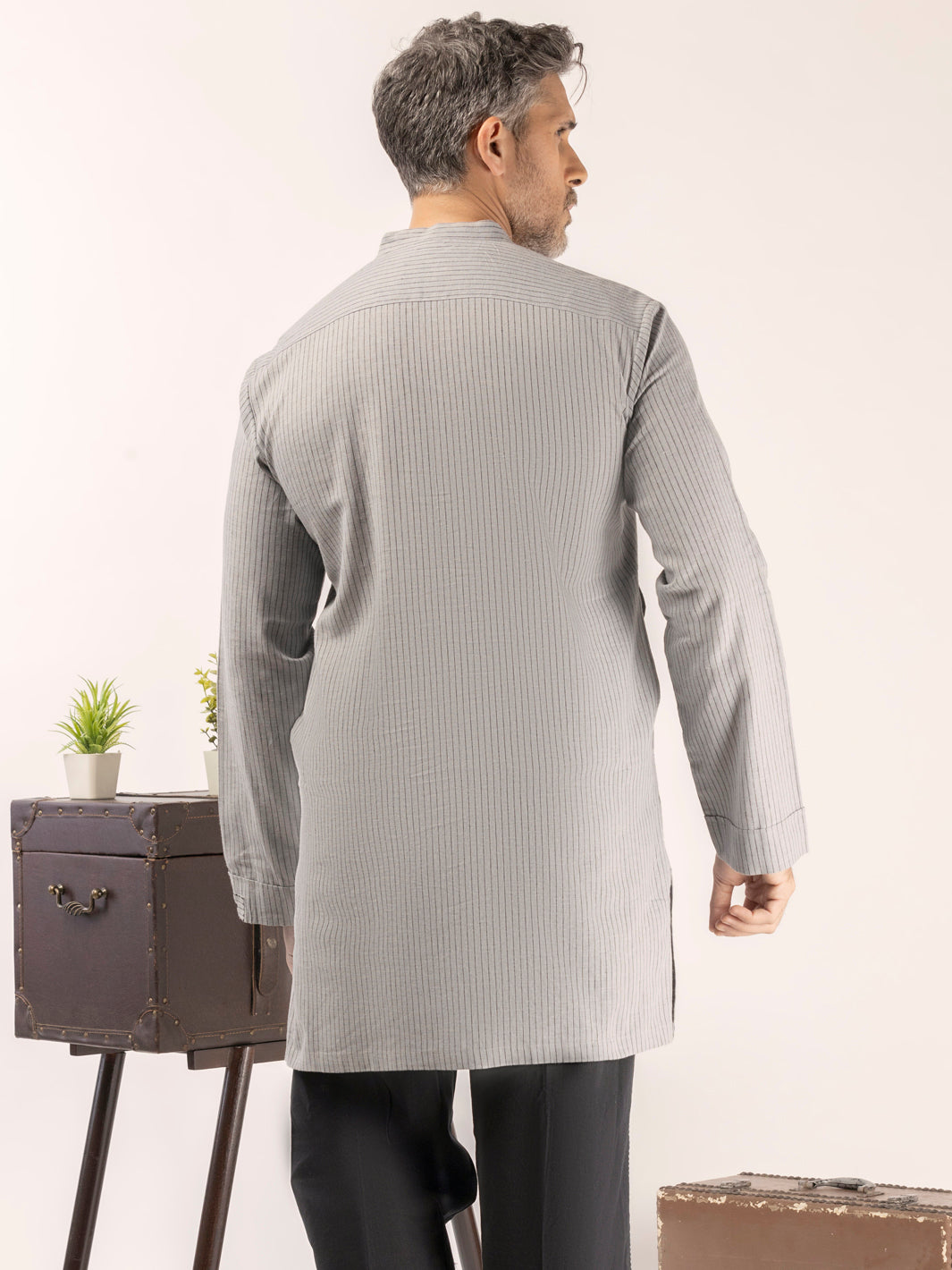 Gray Smart Fit Kurta Featuring a Band Collar With Patch and Minimal Stitch Intricacies on the Placket