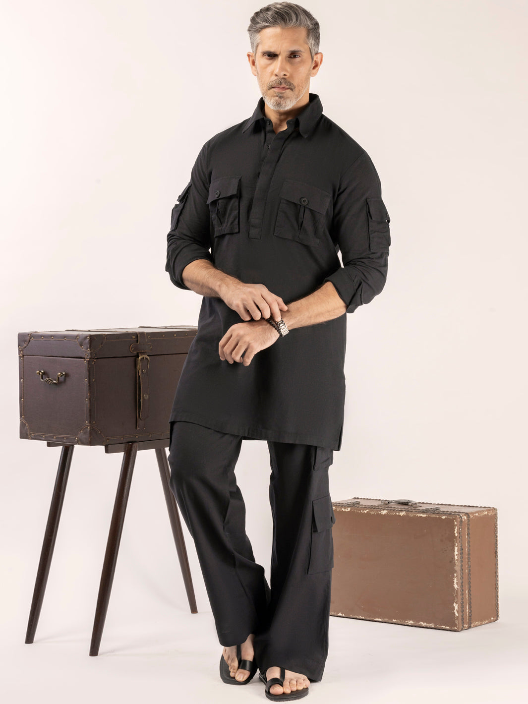 Kurta Trouser With A Shirt Collar And Cargo Pockets, Merging Style With Functionality