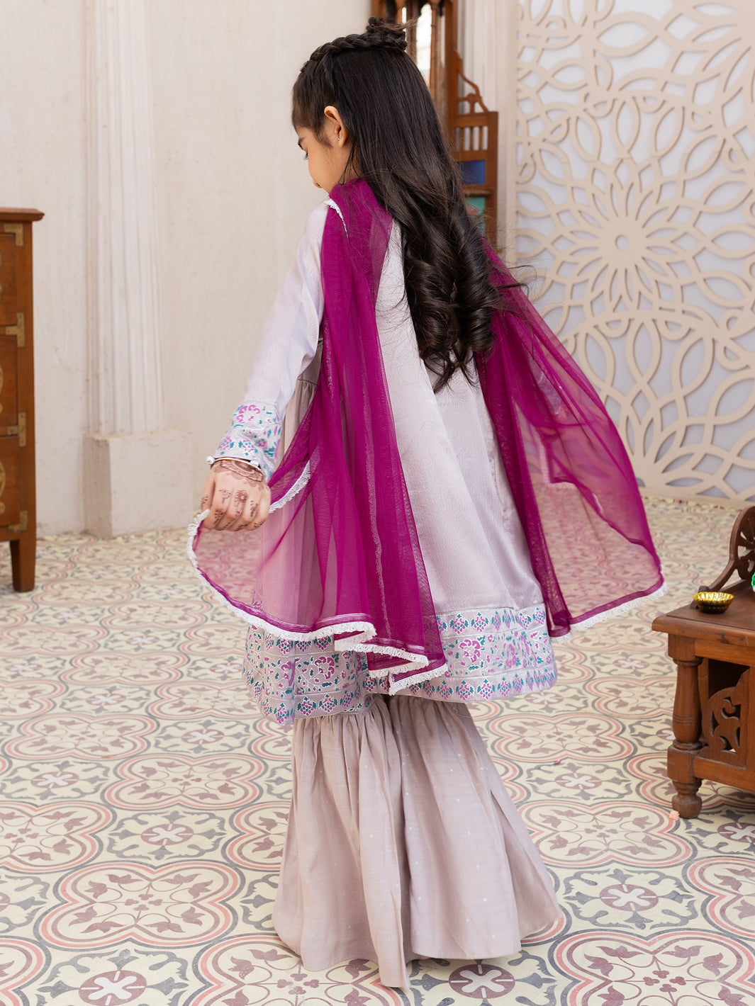 Grey Shimmer Net 3Pc Stitched - ALGR-3PS-LS-011