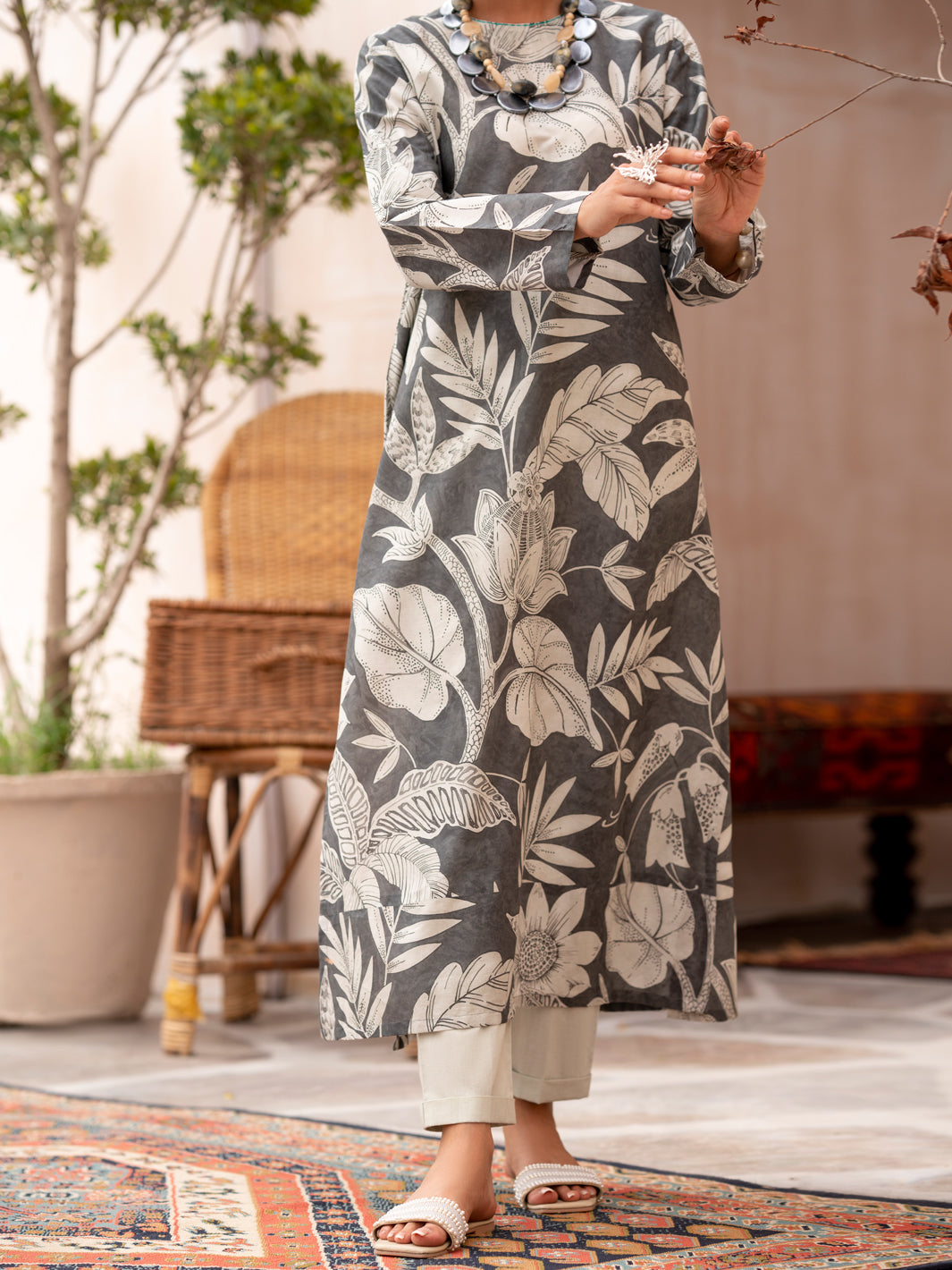 Long length digital printed cambric shirt with loose style and full sleeves.
