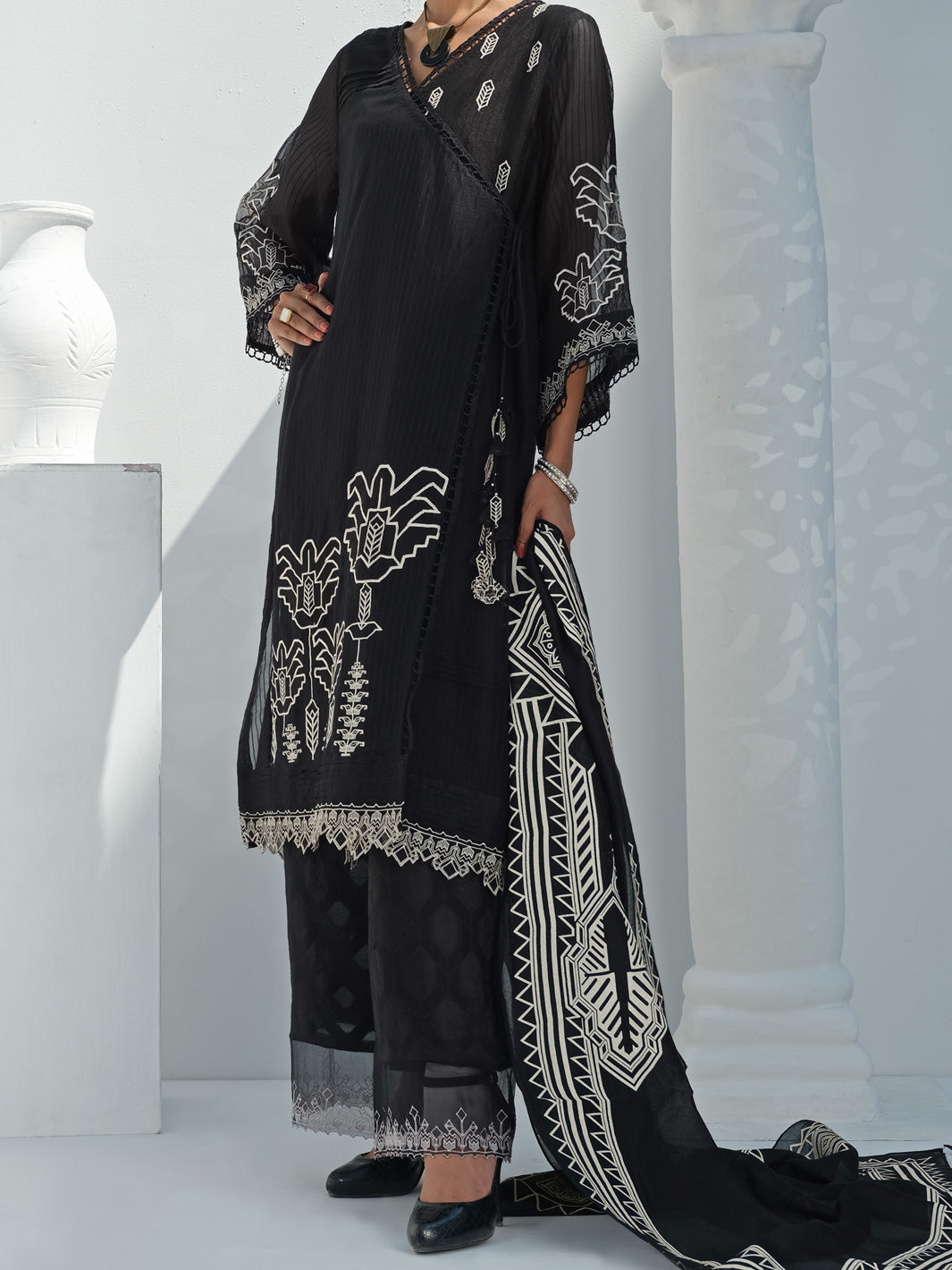 Black Khaddi Net 3Pc Stitched - ALP-3PS-1055