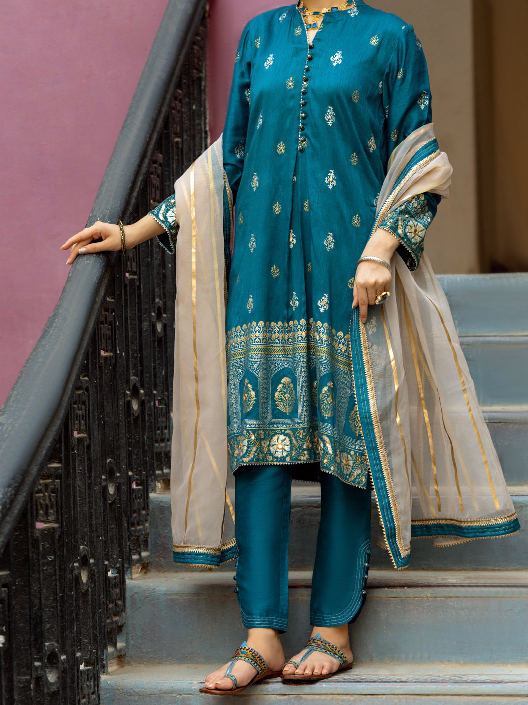 Teal Silk 3Pc Unstitched - ALP-3PS-1197
