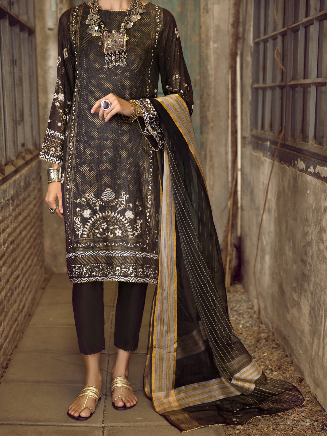 Black Khaddi Silk 3Pc Stitched - ALP-3PS-1286