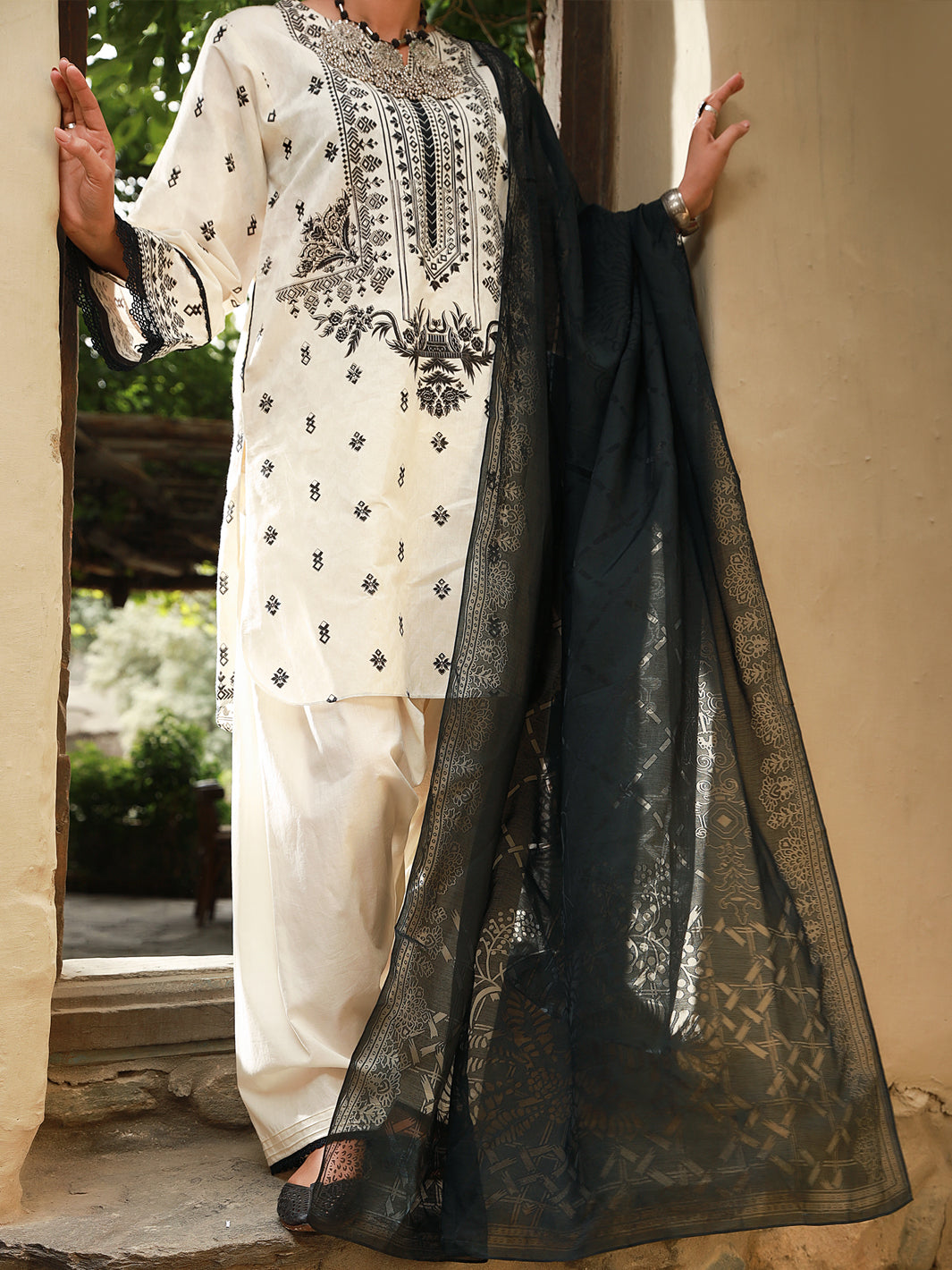 Black & White Dobby 3Pc Stitched - ALP-3PS-1409