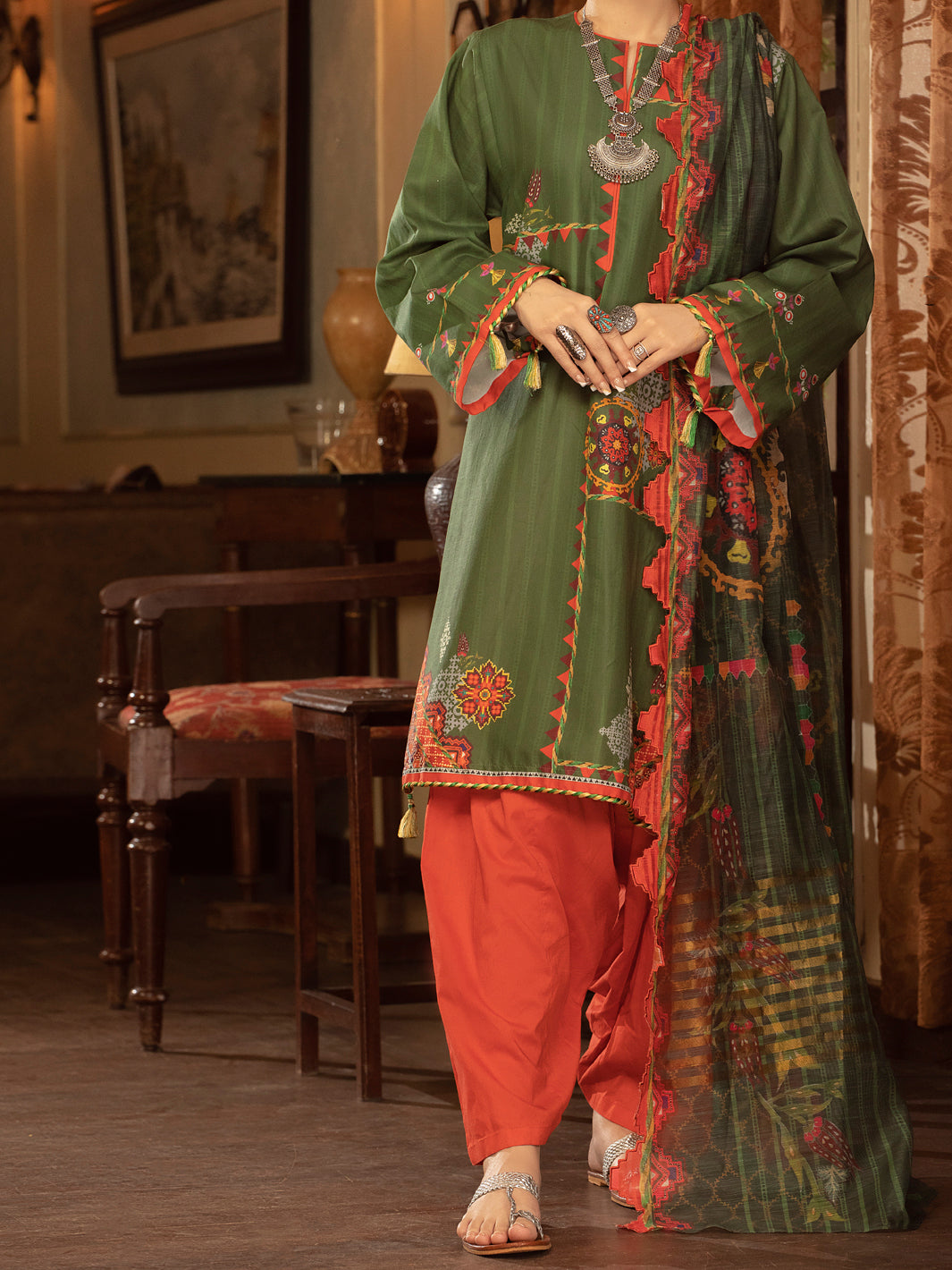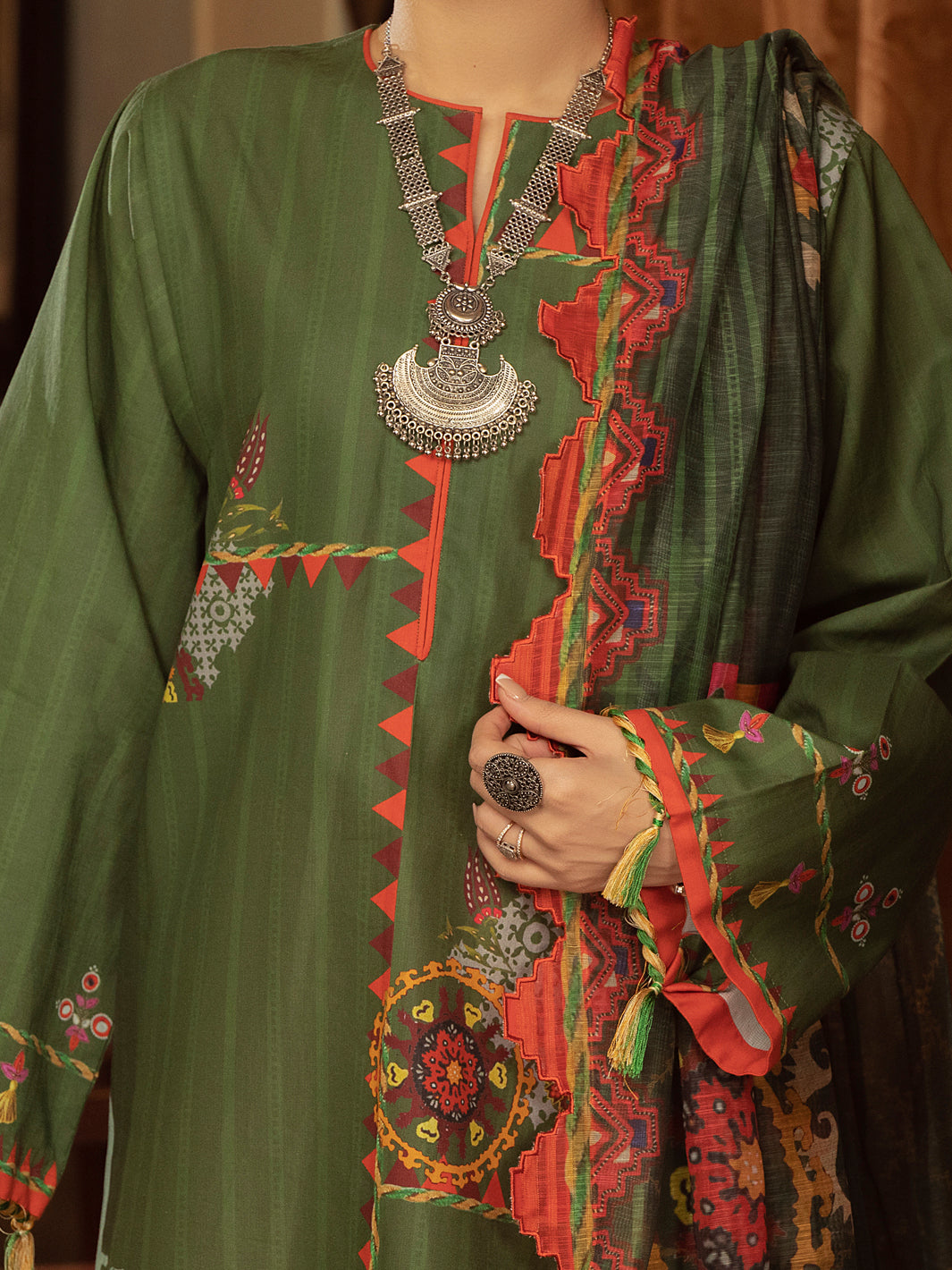 Army Green Cambric 3Pc Stitched - ALP-3PS-1427