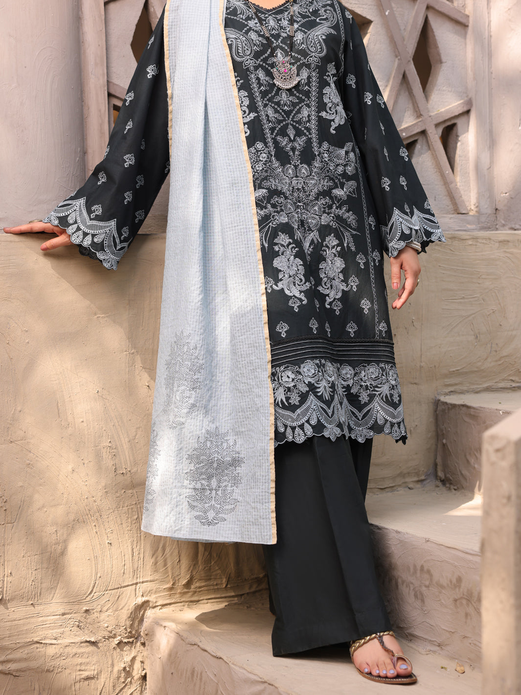 Black Cambric 3Pc Stitched - ALP-3PS-1631