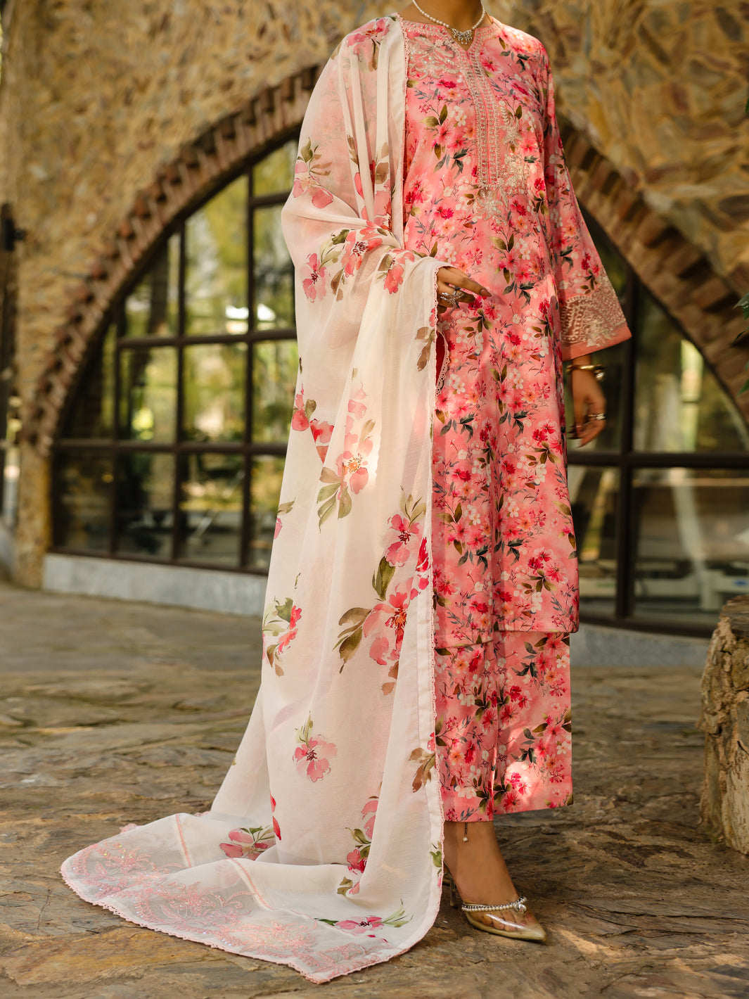 Pink Poly-Lawn 3Pc Stitched - ALP-3PS-2360