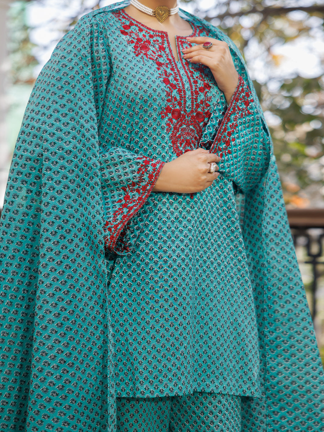 Sky Blue Cotton Stitched 3PC - ALP-3PS-2571