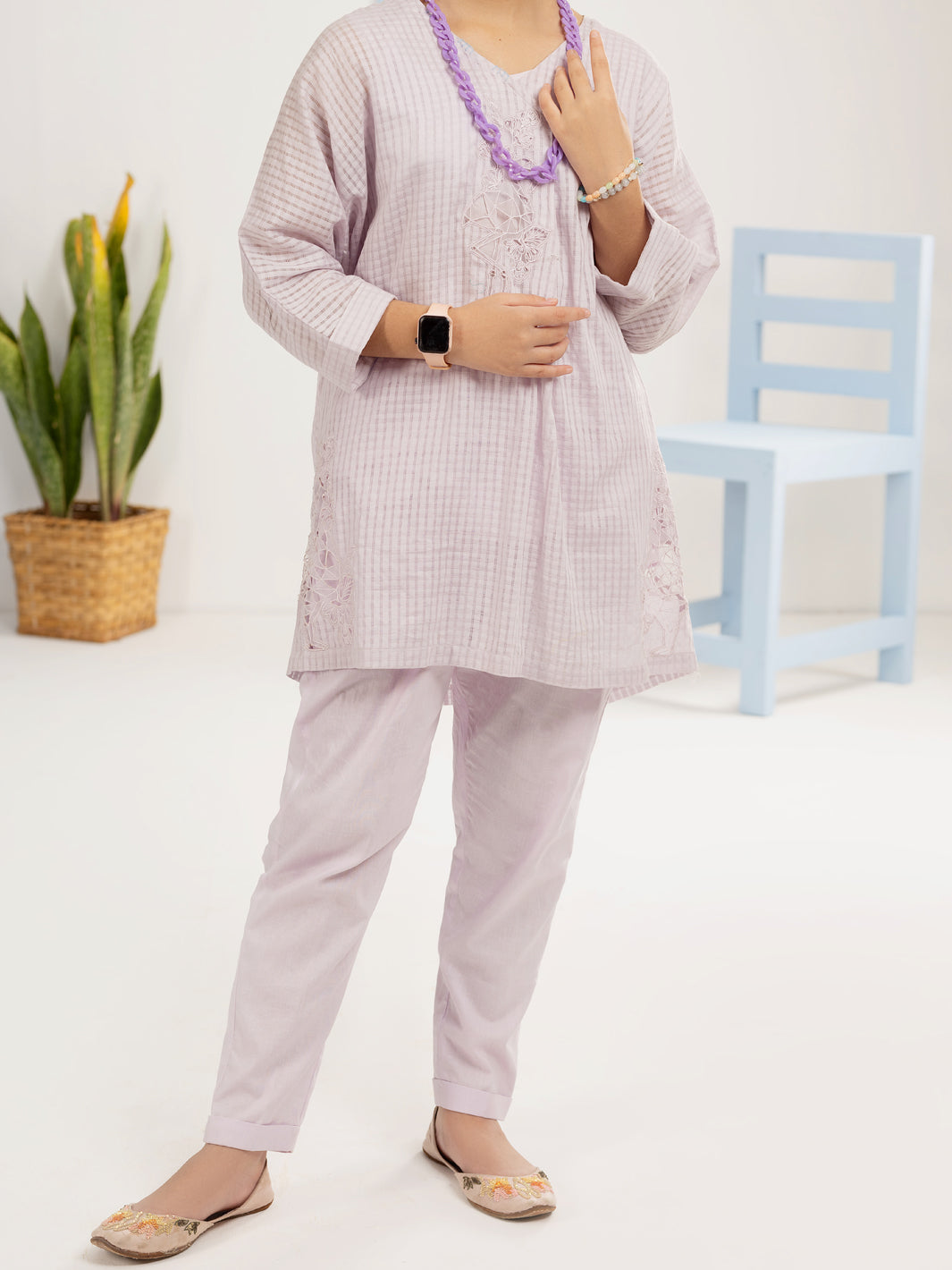 Lilac Cotton Dobby 2 Piece Stitched