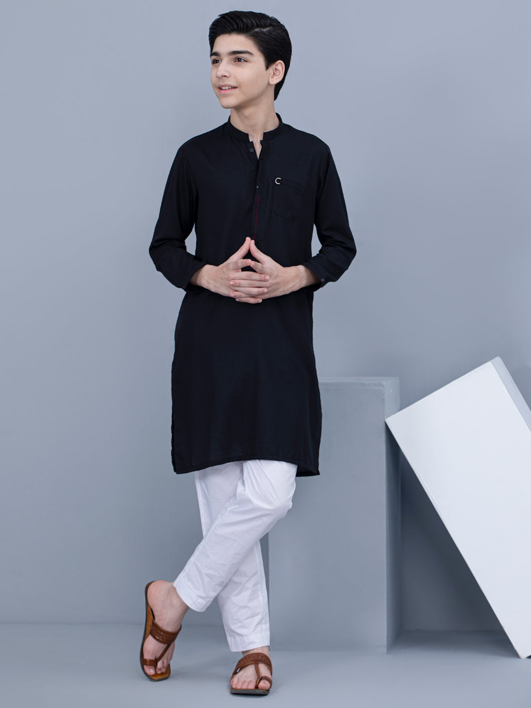 Black Kurta With Cut And Sew Placket And Minimal Design Details