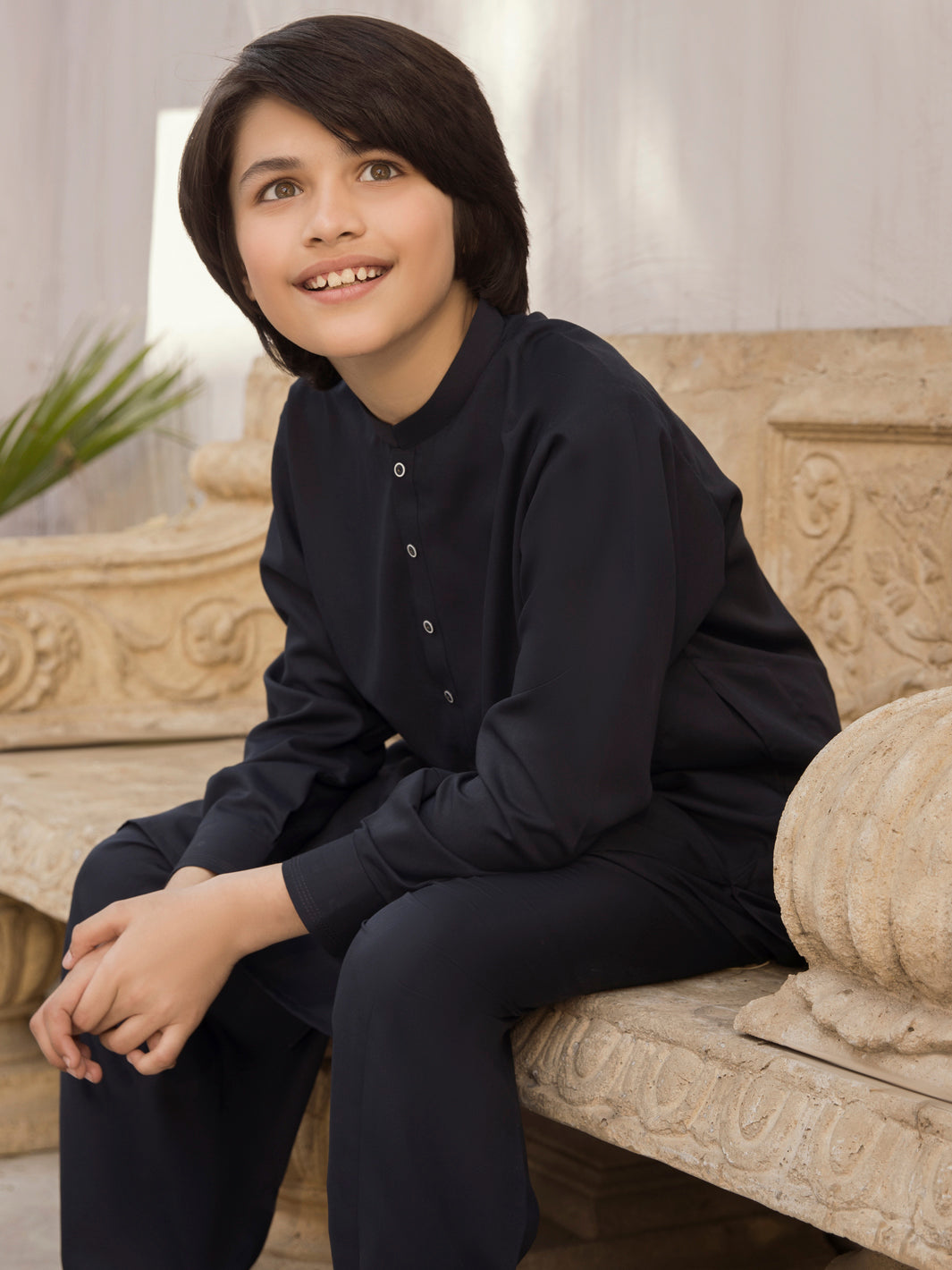 Navy Blue Blended Boy Kameez Shalwar - ALT-KS-030C