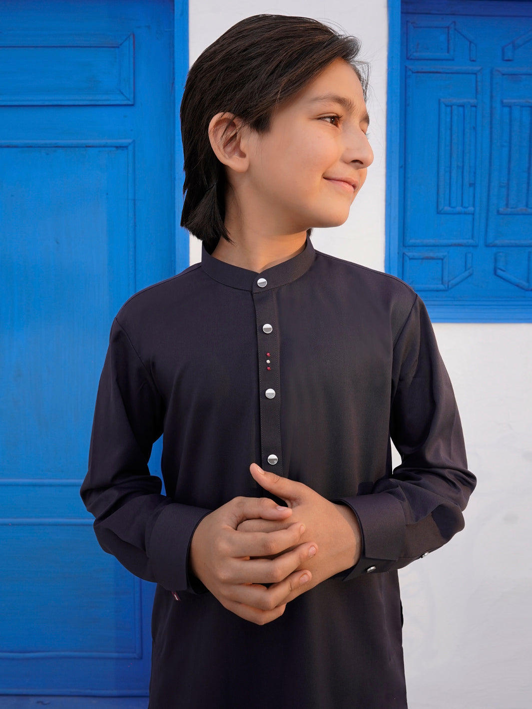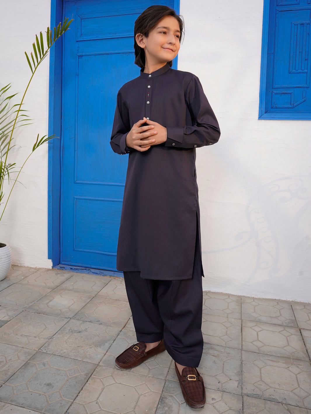 Kameez Shalwar With Intricate Cut & Sew and Embroidery Accents on the Cuffs, Back Yoke, Inner and Outer Placket