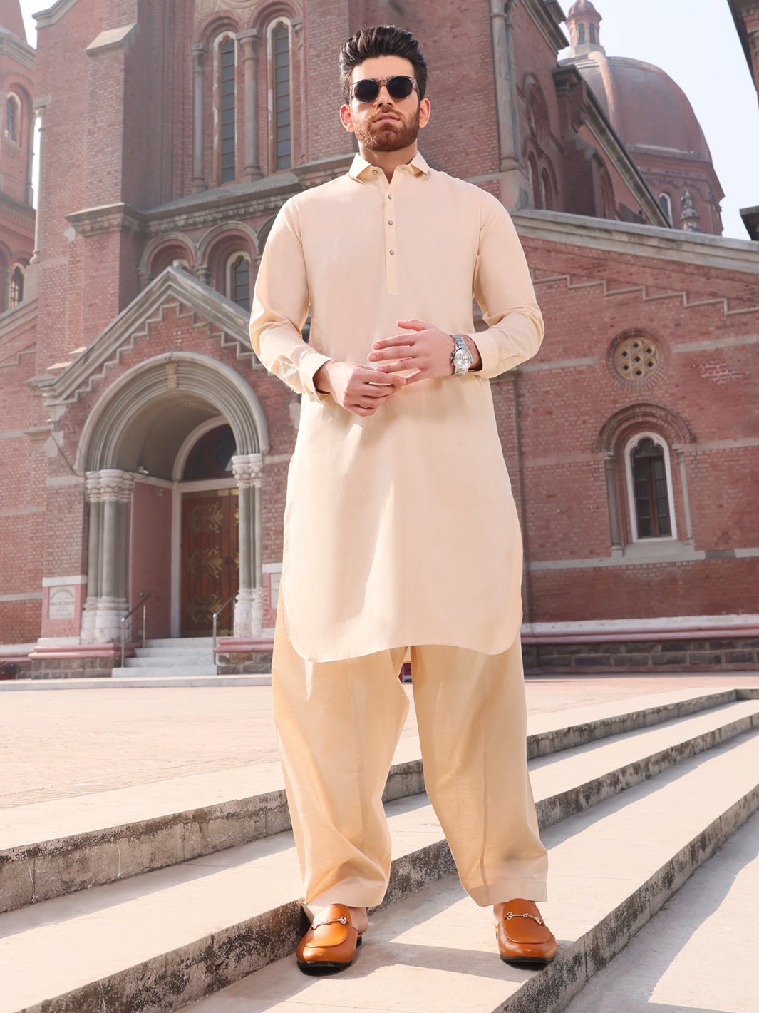 Classic Fit Kameez Shalwar Stitched In Premium Cotton Fabric With Shirt Collar.
