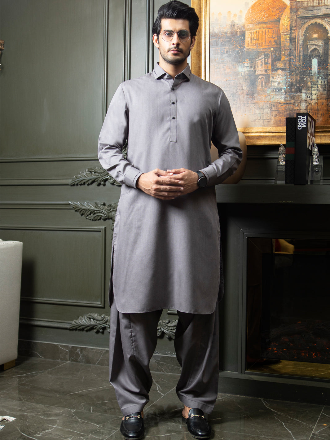 Grey Blended Kameez Shalwar - ALWA-KS-272
