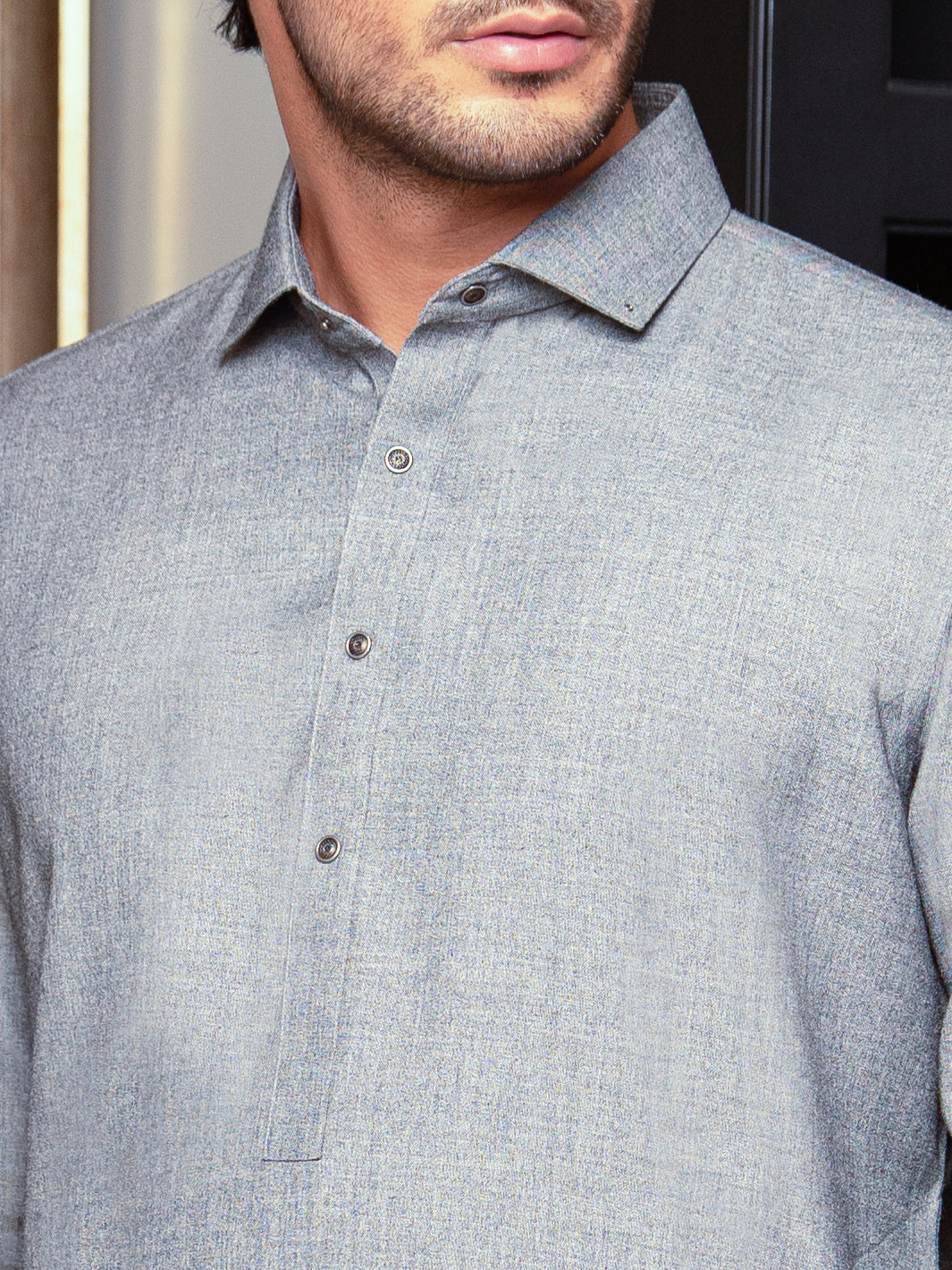 Light Grey Blended Kameez Shalwar - ALWA-KS-292