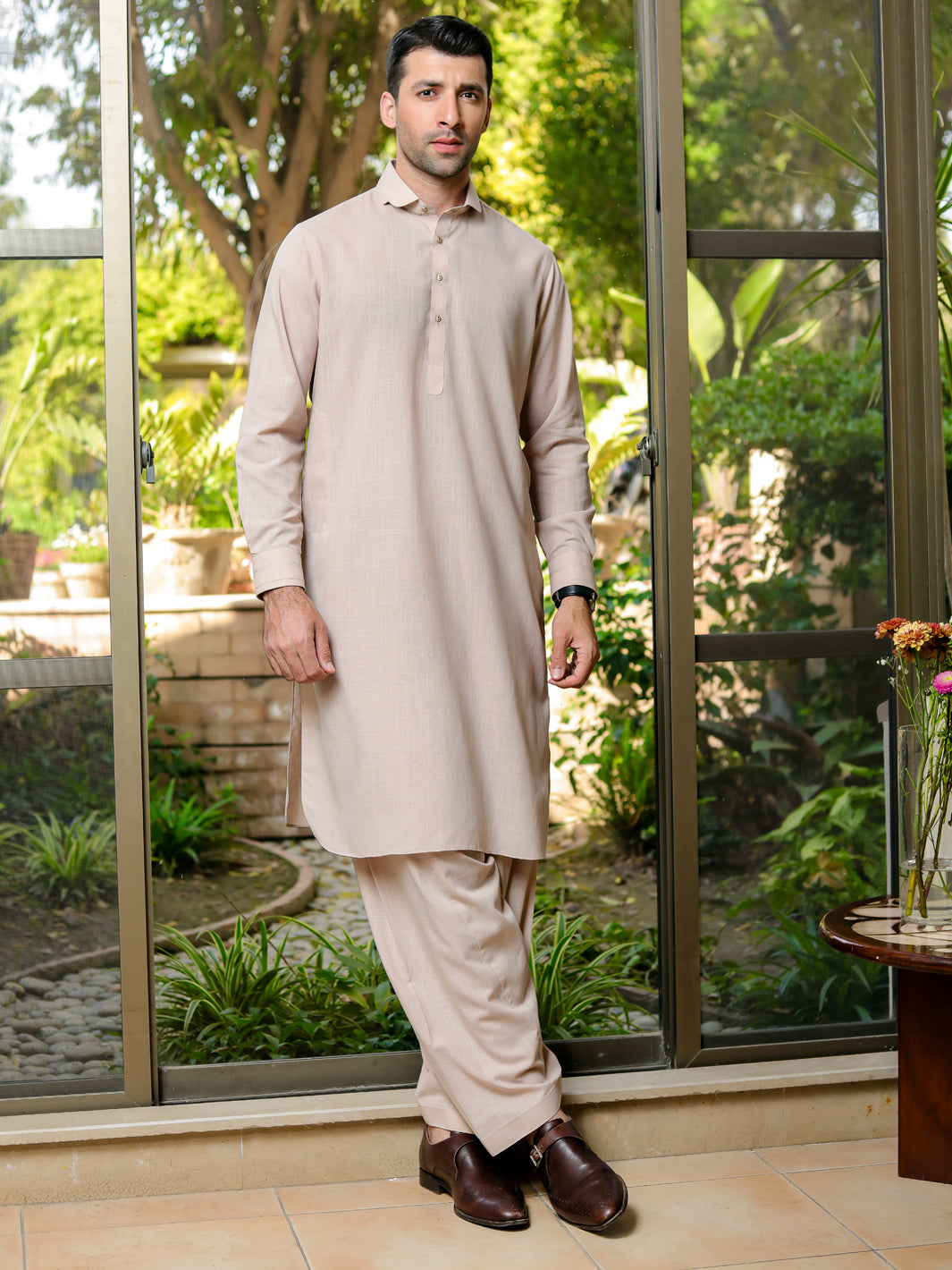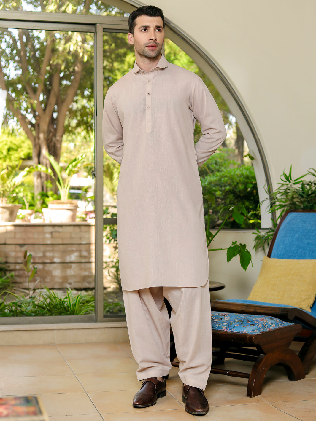 Kameez Shalwar With Snap Buttons And Rounded Collar And Cuffs